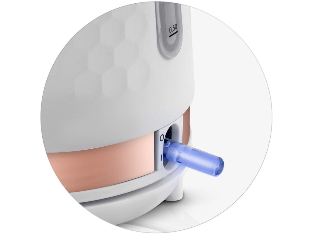 Fierbătorul are un întrerupător iluminat și un indicator de nivel al apei din material transparent.