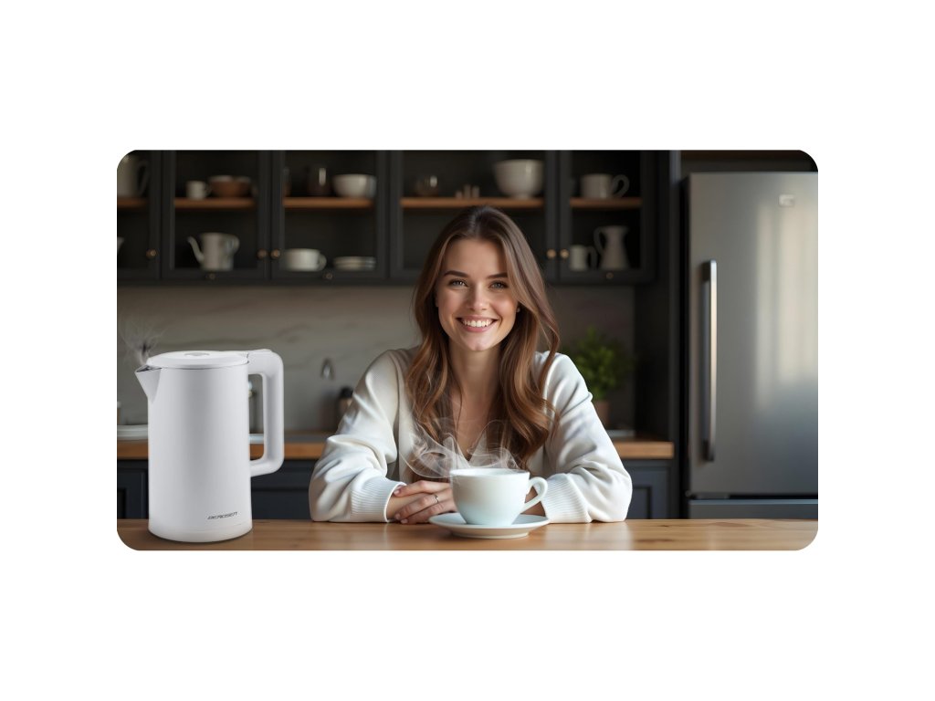 - fierbător minimalist alb - se potrivește în orice bucătărie