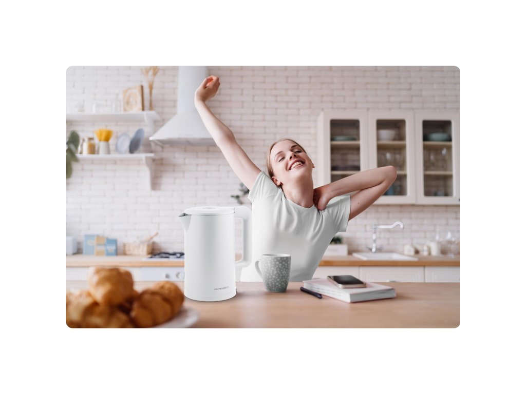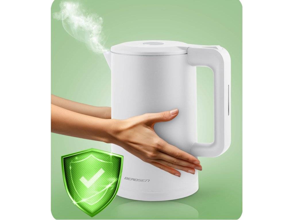 cu strat dublu, compusă din oțel inoxidabil și un strat de plastic de înaltă calitate, fierbătorul nu se încinge pe exterior.