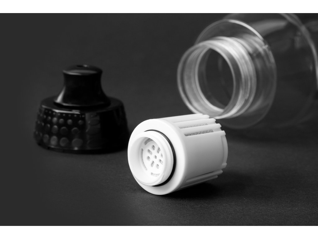 Sticla are un sistem de filtrare în 3 trepte. Filtrul de sedimentare captează materialele libere, inclusiv praful și sedimentele, filtrul cu carbon activ absoarbe foarte eficient clorul, compușii volatili fenolici și alte impurități organice, în timp ce filtrul final reduce ieșirea particulelor fine din mediul de filtrare.