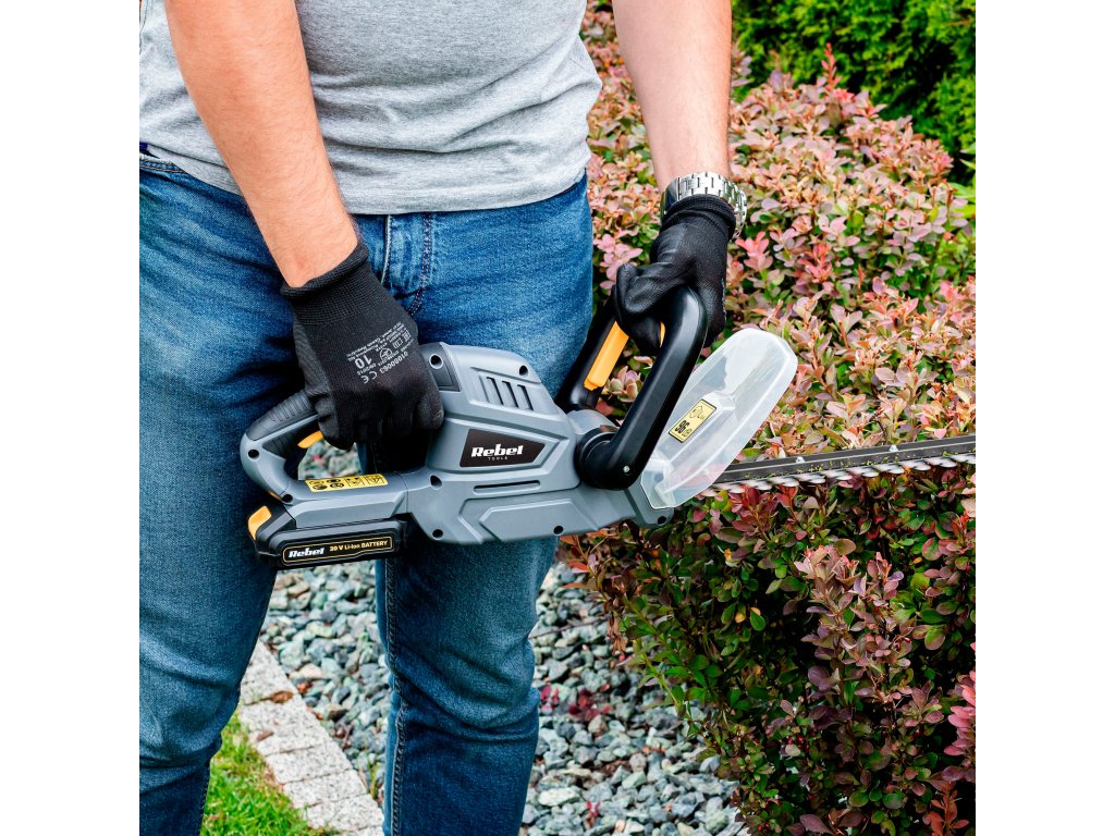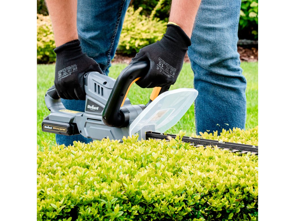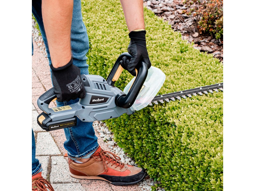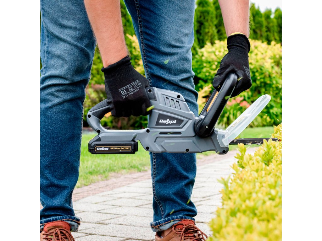 Foarfecile pentru garduri vii vin cu protecție pentru lamă și un manual de utilizare detaliat, ceea ce facilitează depozitarea lor în siguranță și utilizarea pe termen lung. Construcția lor ușoară și greutatea redusă de doar 2,5 kg asigură că lucrul în grădină este o plăcere și rezultatele sunt vizibile imediat.Dispozitivul este compatibil cu două modele de acumulatori din seria Rebel Tools. În funcție de nevoile dvs., puteți achiziționa modelul de 2 Ah (RB-2001) sau de 4 Ah (RB-2002) și un încărcător dedicat pentru acestea.