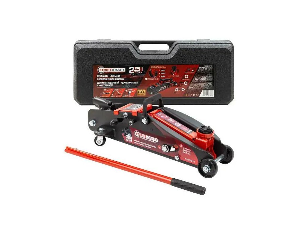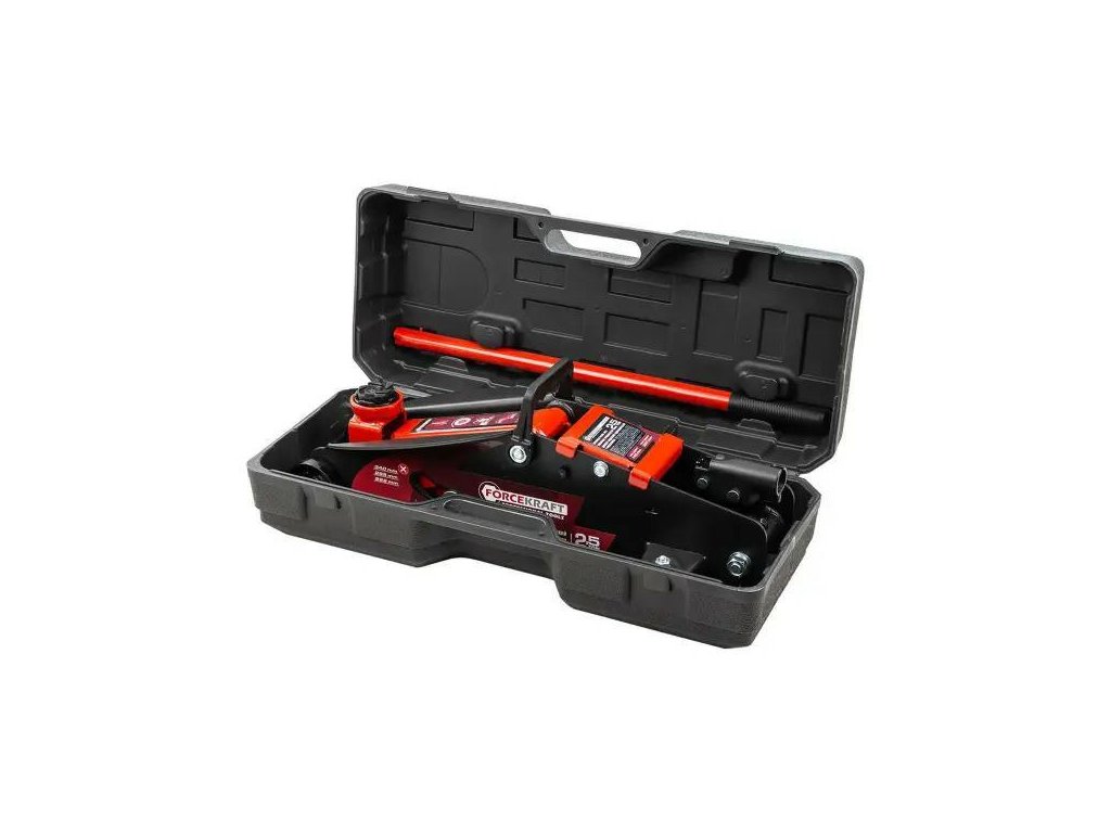 Jackul hidraulic marca FORCEKRAFT este un dispozitiv de încredere destinat ridicării autovehiculelor cu o greutate de până la 2,5 tone. Datorită designului compact, sistemului de blocare pe trei niveluri și construcției din oțel solid, este ideal pentru ateliere auto, service-uri de anvelope, locuri de service mobile și garaje private.