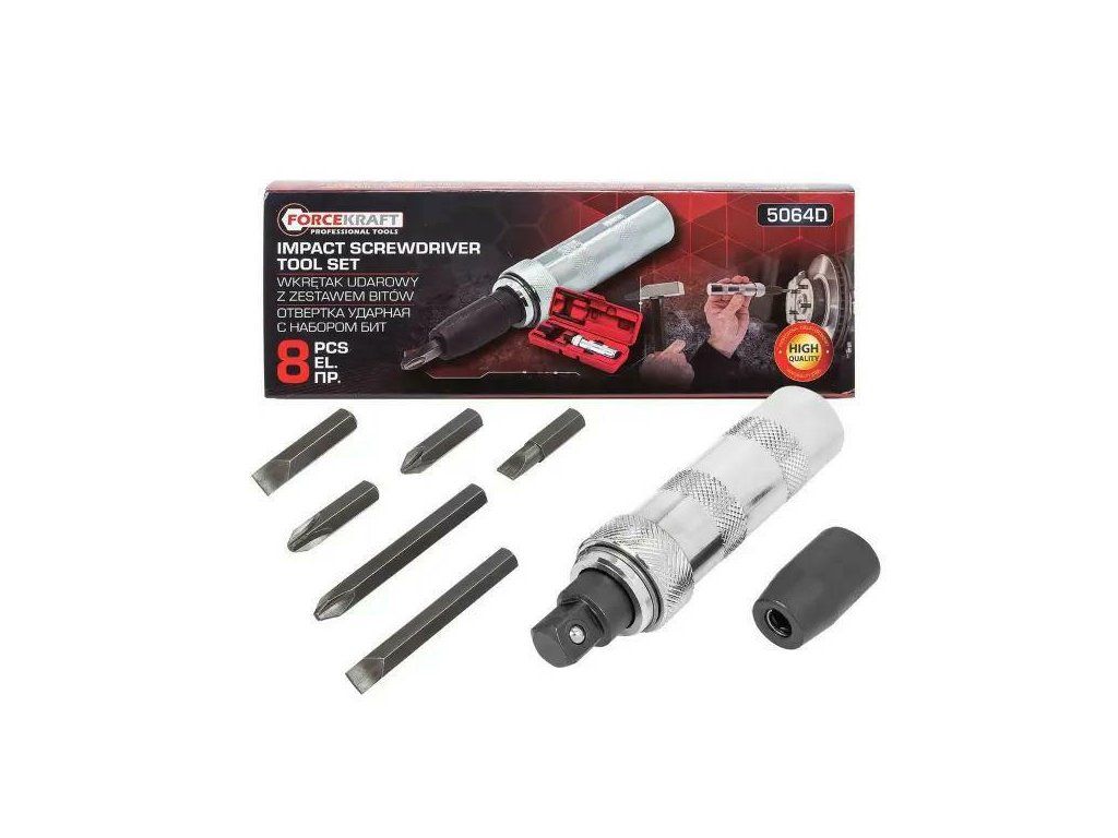 FORCEKRAFT Șurubelniță cu impact 1/2" cu SET de biți și ADAPTATOR 8 PIESE