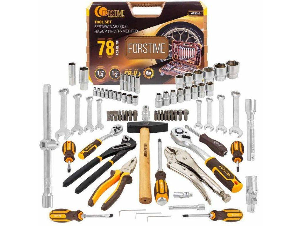 FORSTIME Set de unelte MARE 78 PIESE 1/4" 1/2" cu 6 colțuri 4-32mm