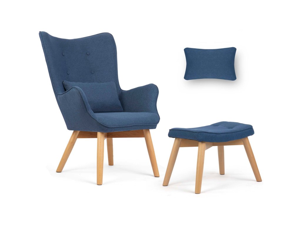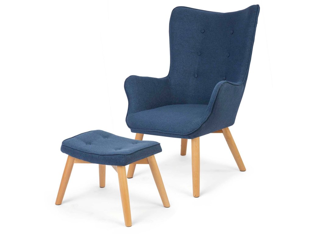 Fotoliu cu taburet albastru