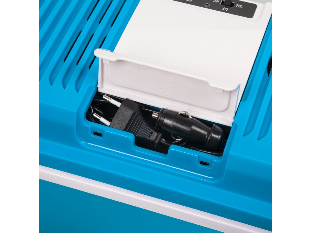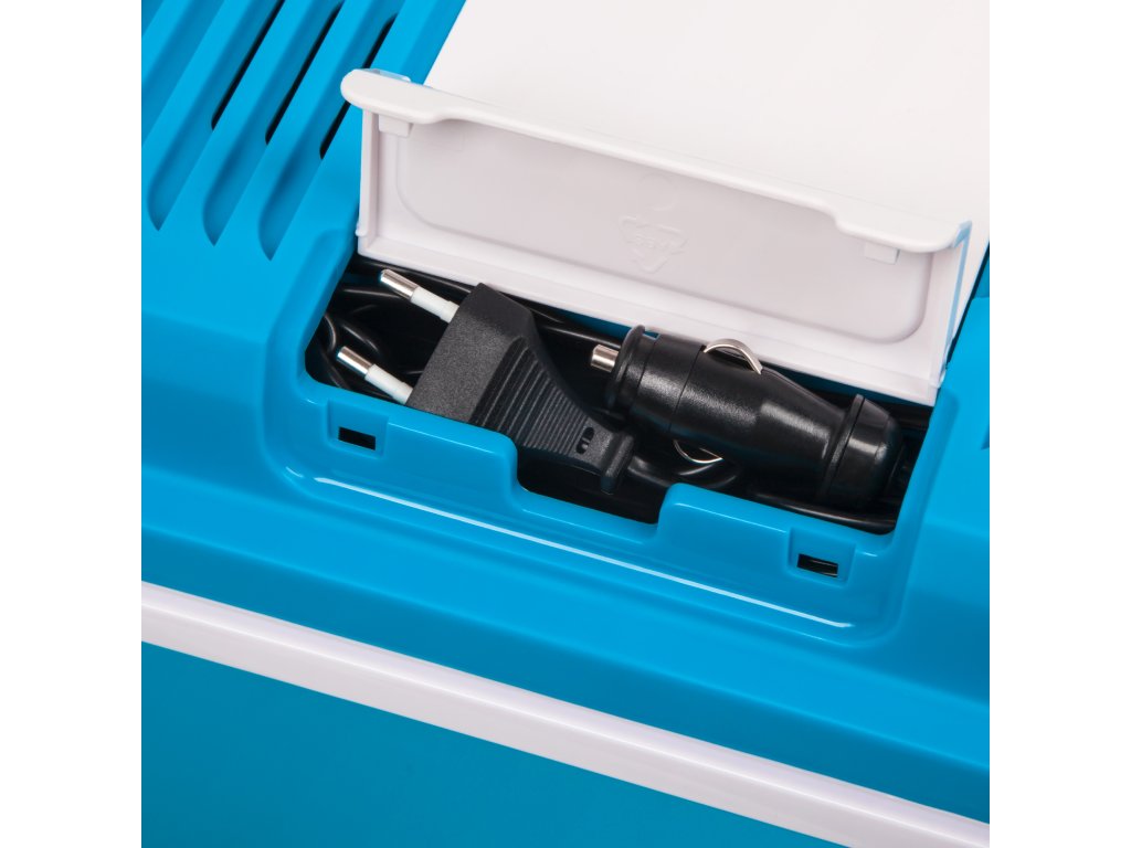 Acest frigider compact este echipat cu conectori care vă permit să-l conectați atât la priza brichetei auto, cât și la o priză electrică obișnuită. Datorită acestui fapt, indiferent dacă călătoriți cu mașina, campați într-o zonă izolată sau stați la hotel, puteți stoca alimentele în condiții adecvate.