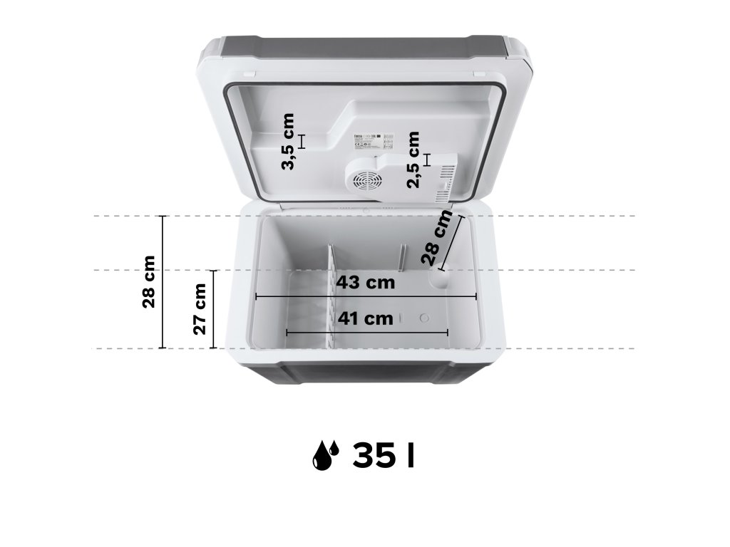 Frigiderul portabil Teesa este soluția perfectă pentru persoanele care planifică excursii de familie mai lungi sau călătoresc în grupuri. Capacitatea mare de 35 litri oferă suficient spațiu pentru a depozita o cantitate mai mare de alimente și băuturi. Puteți depozita fără probleme sticle, cutii, borcane, fructe și legume proaspete.