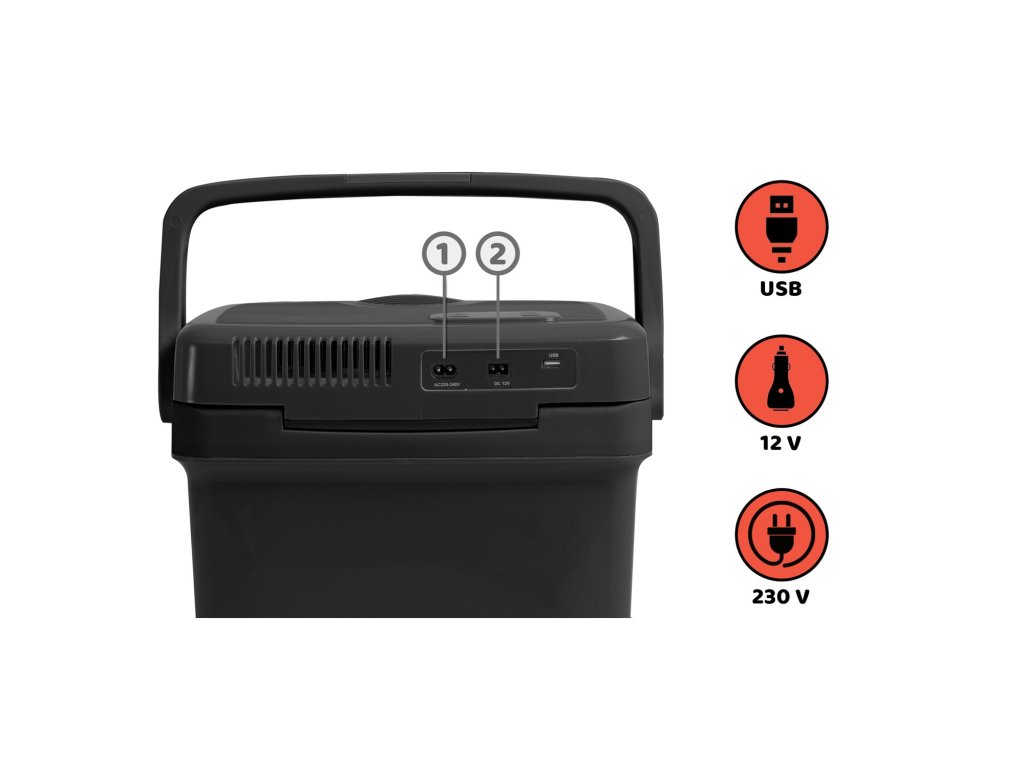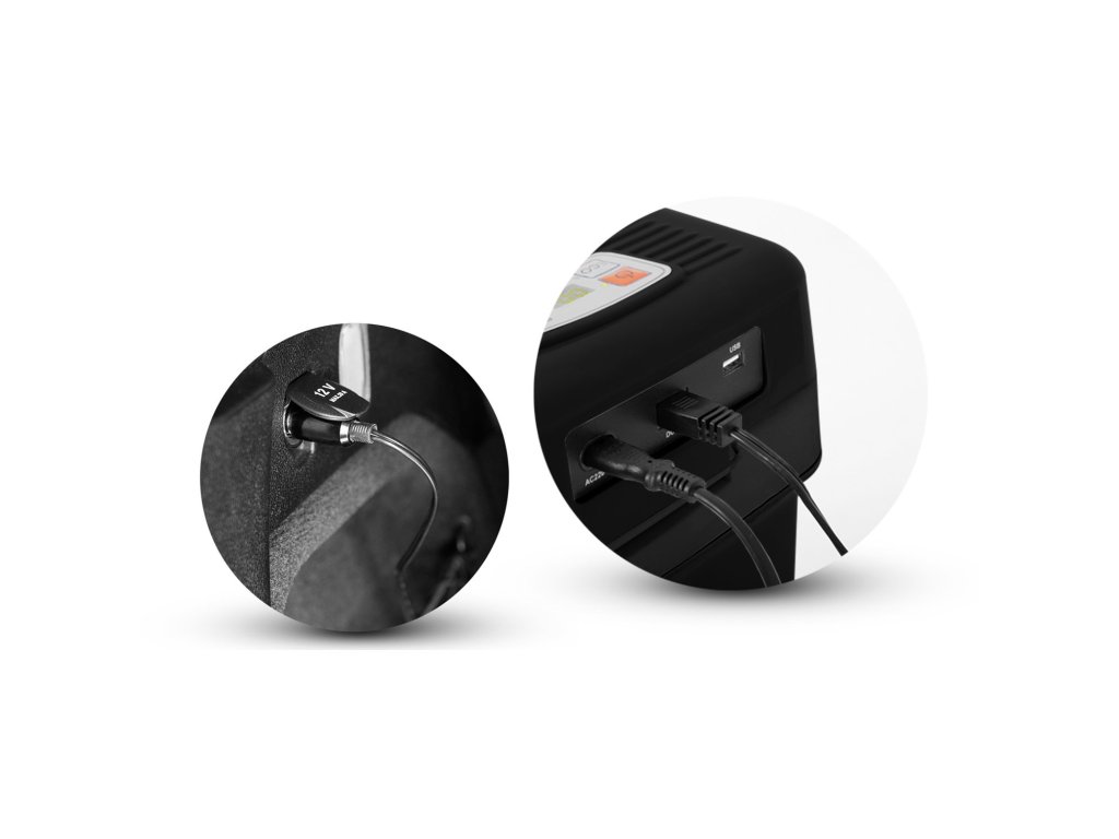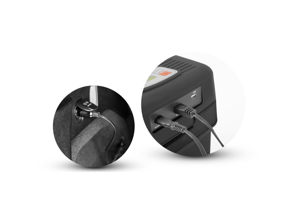Priză auto - puteți folosi frigiderul în timpul călătoriilor cu mașina dumneavoastră de 12V.