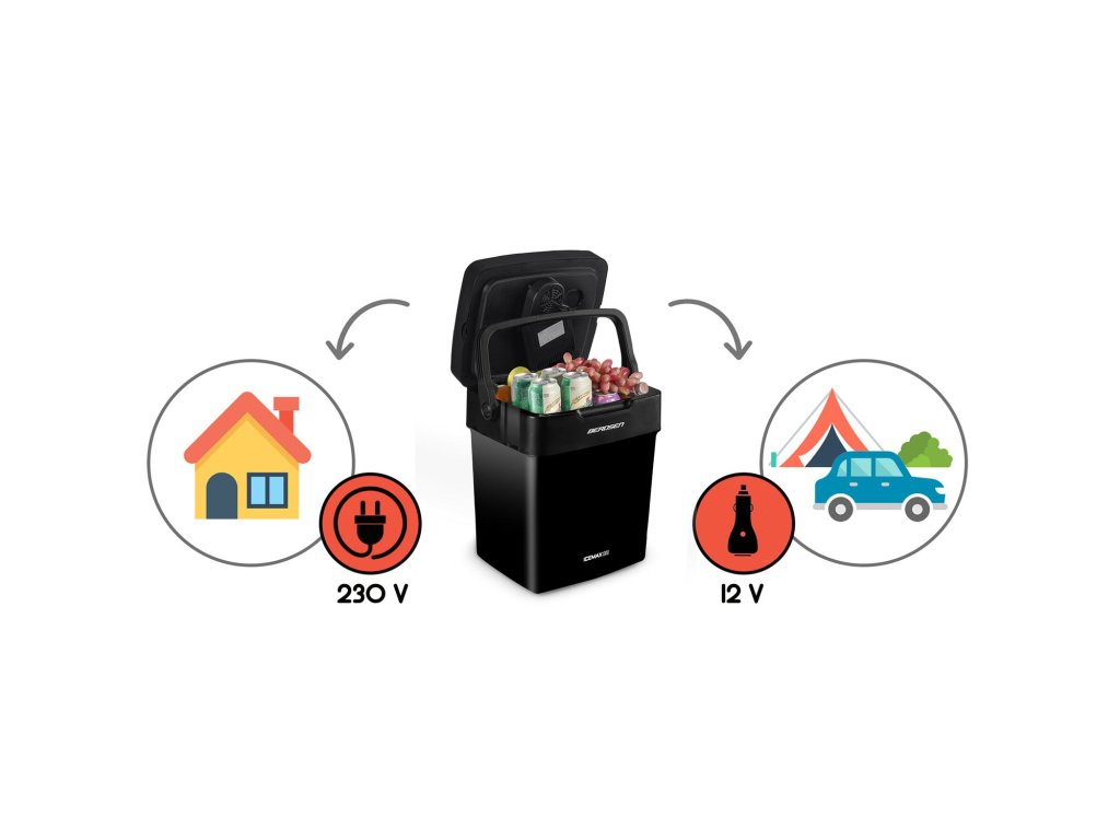Frigiderul poate fi alimentat cu 12 V și 230 V folosind cablurile de alimentare incluse în set - nu aveți nevoie de accesorii suplimentare.