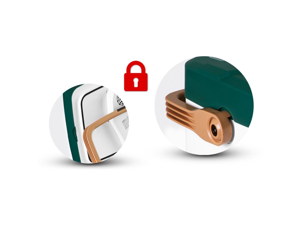 Frigiderul are un mâner pliabil pentru transport .Mânerul frigiderului servește și ca clapetă de siguranță .