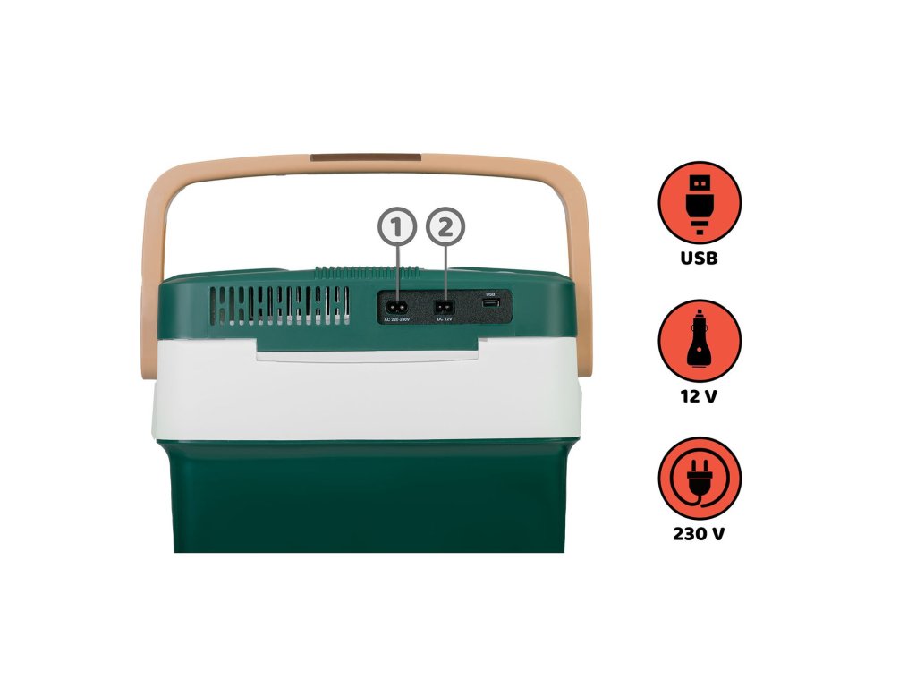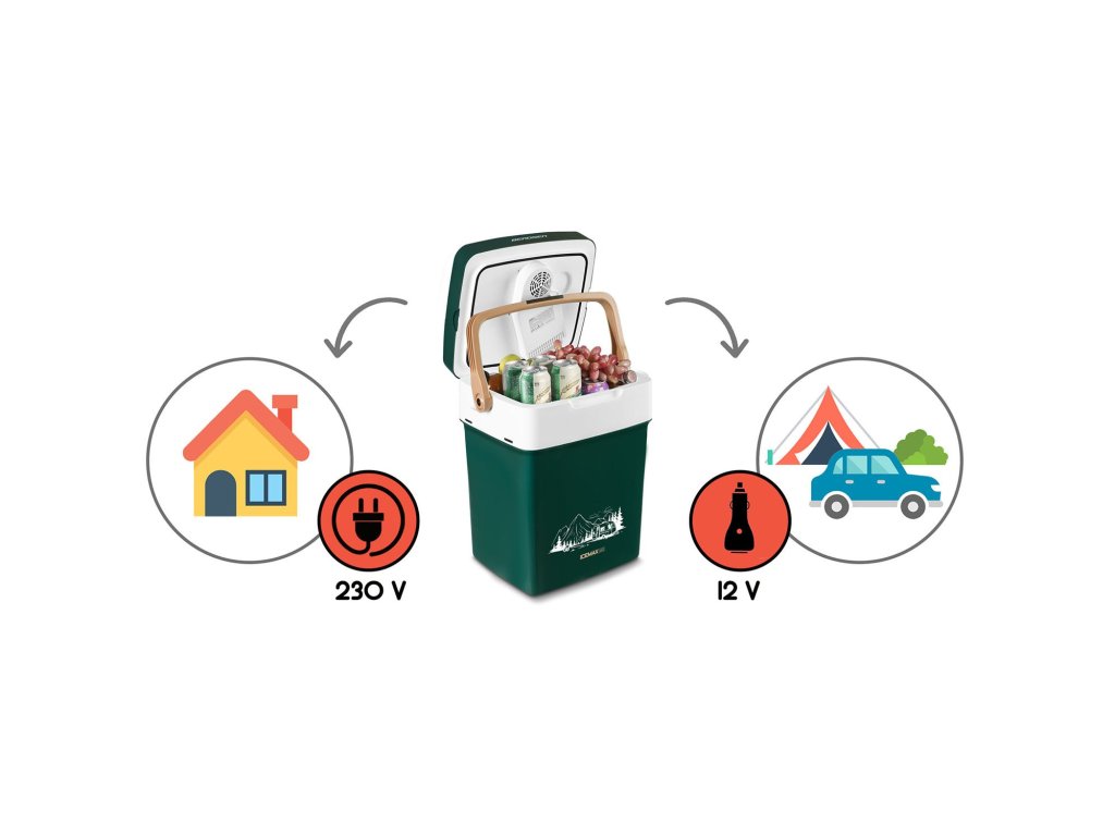 Frigiderul poate fi alimentat cu 12 V și 230 V folosind cablurile de alimentare incluse în set - nu aveți nevoie de alte accesorii.