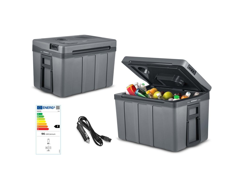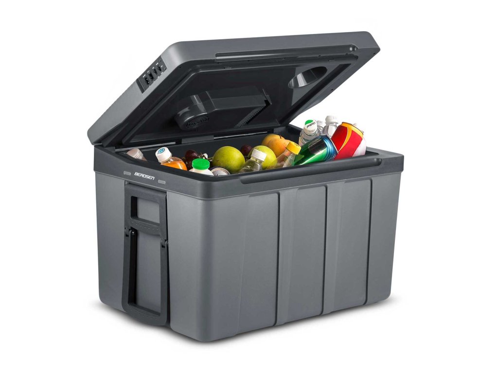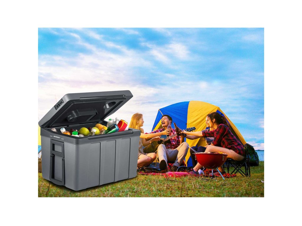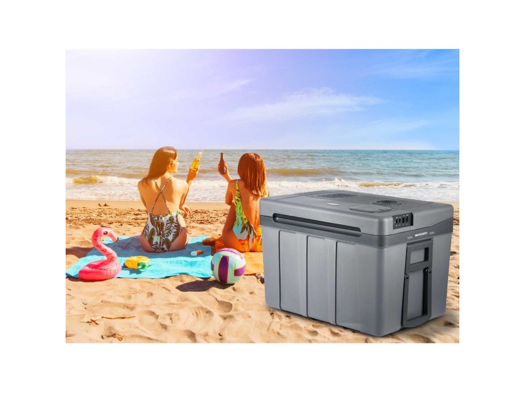 Frigider turistic - ideal pentru plajă, camping sau casa de vacanță. Datorită celor două ventilatoare încorporate, produsele din compartiment sunt răcite uniform.