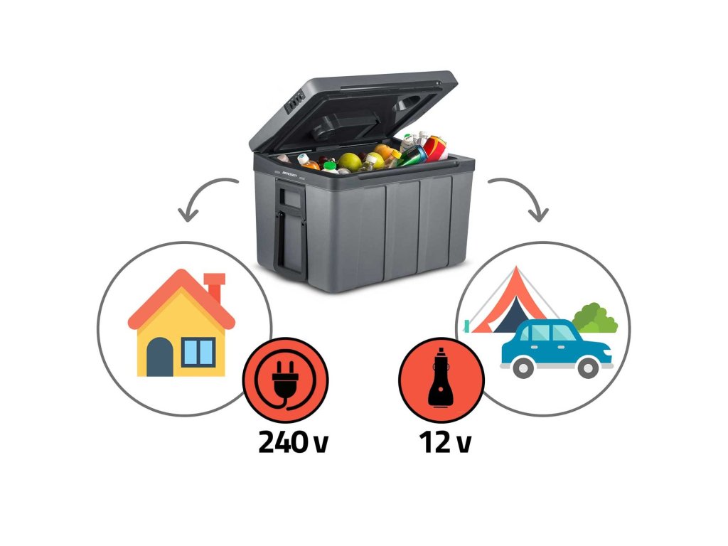 Frigiderul poate funcționa la 240 V și 12 V. Pe lângă modul de răcire, aparatul este echipat și cu un mod de încălzire. Acesta poate fi util, de exemplu, pentru menținerea mâncărurilor gata preparate calde.