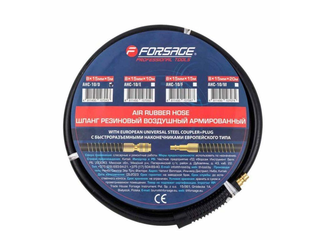 Furtun pneumatic din cauciuc întărit 8mm x 15mm 5m cu conectori rapizi