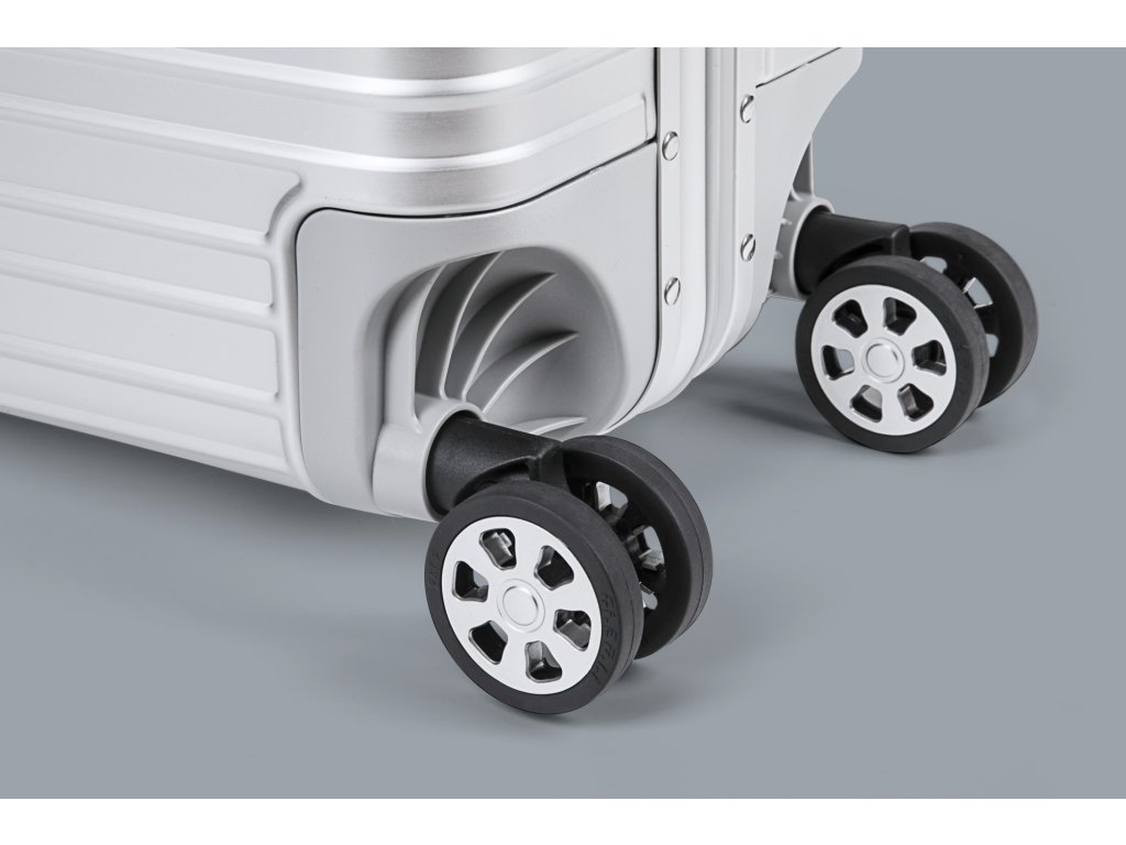 Alegeți modelul ideal pentru dumneavoastră. Alegeți dintre două culori - argintiu sau negru - și trei dimensiuni - mare, medie și bagajul de mână ideal pentru avion. Chiar și tovarășii de călătorie vor fi impresionați de designul la modă, accentuat de colțurile din aluminiu cu nituri decorative.Material: aluminiu