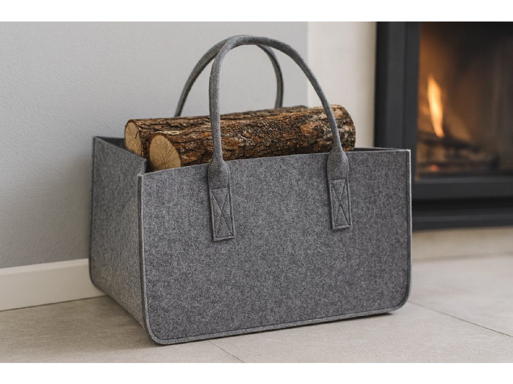 Geantă universală și practică din felt. Se potrivește ideal pentru transportul lemnului de foc, precum și pentru transportul cumpărăturilor în portbagaj. O puteți lua cu succes la plajă sau la picnic și pentru a depozita diferite lucruri. Geanta are mânere solide.