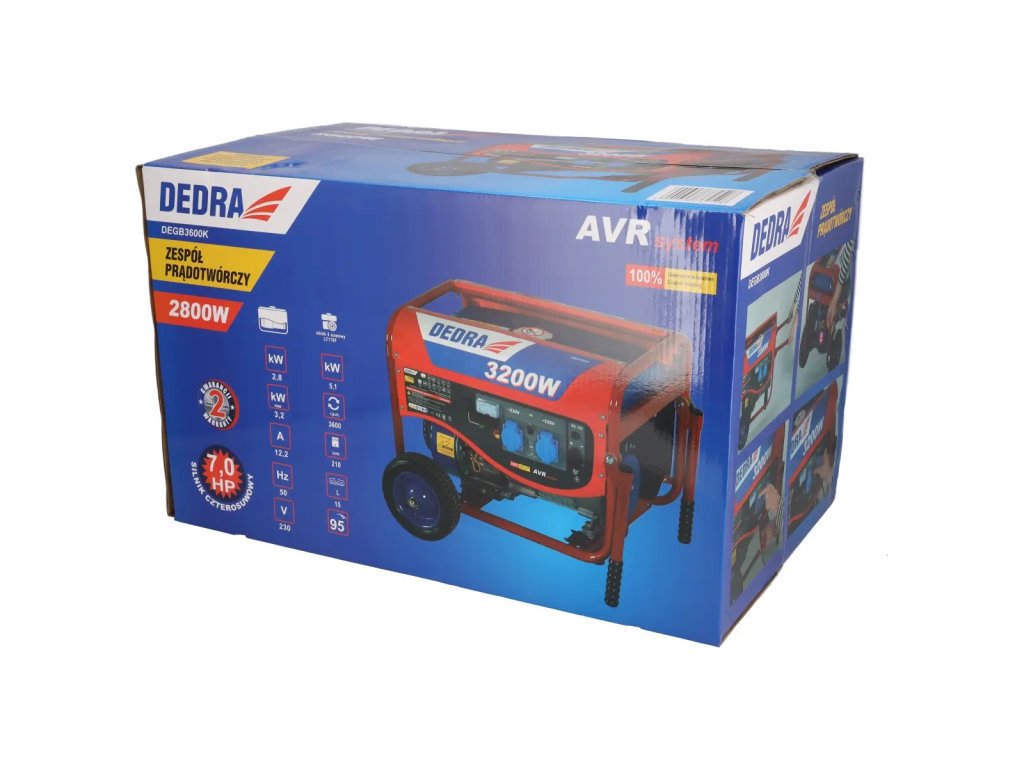 Setul generator DEGB3600K cu o putere nominală de 2800 W este utilizat ca alimentare de urgență în cazul unei întreruperi a rețelei electrice.