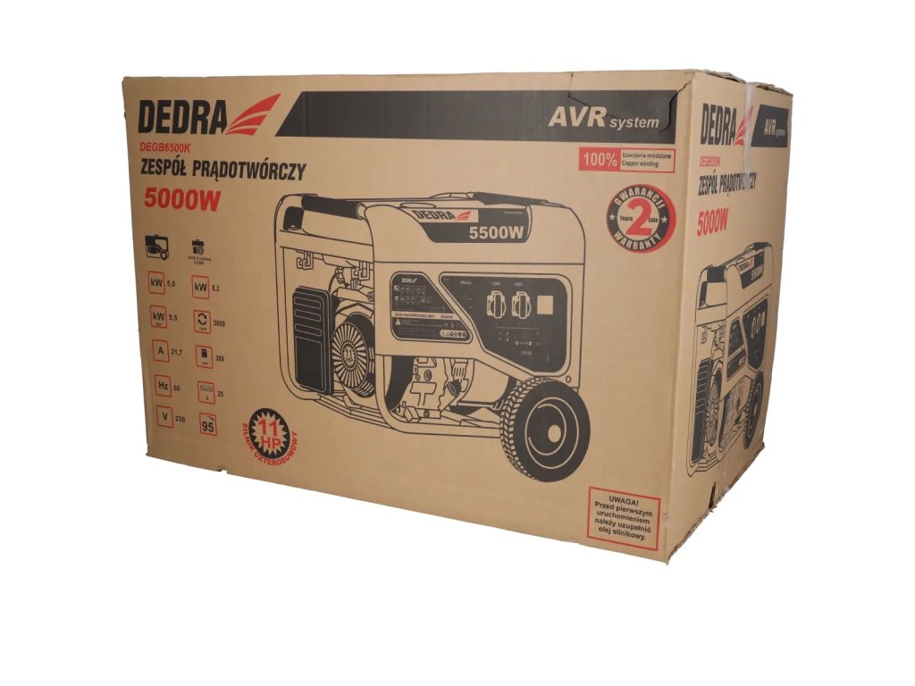 Setul generator DEGB6500K cu o putere nominală de 5000 W servește ca sursă de energie de urgență în caz de întrerupere a rețelei electrice.