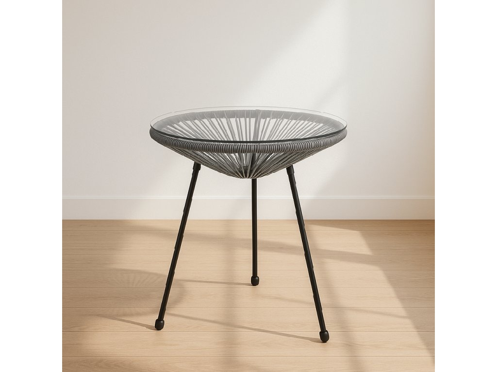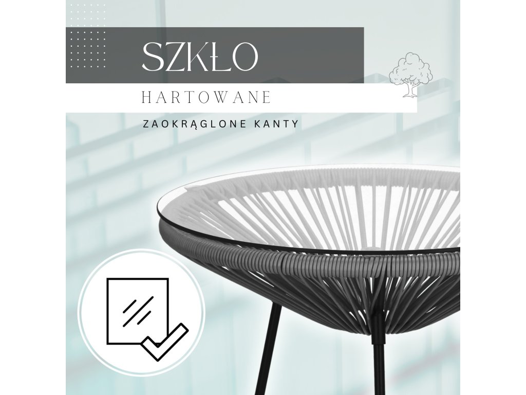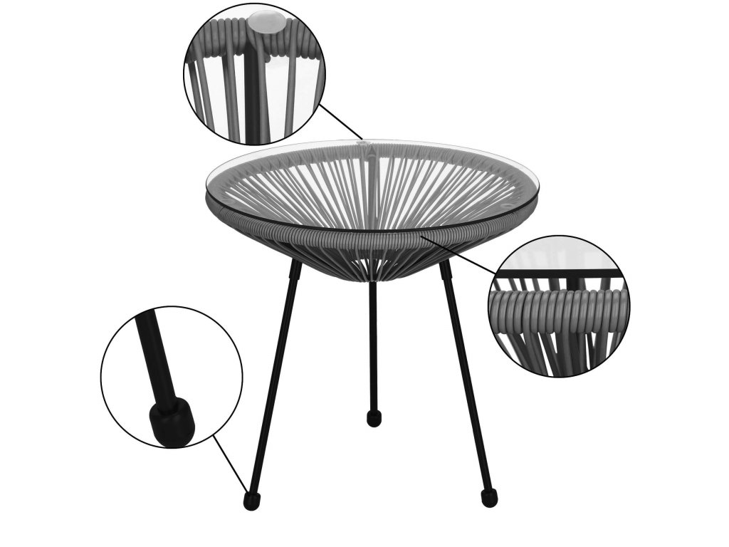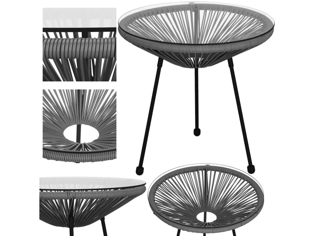 - Material: PE ratan, metal, sticlă securizată