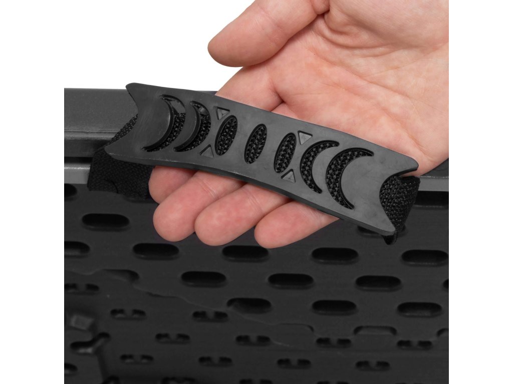 - Echipată cu mâner pentru transport (negru, material + cauciuc)