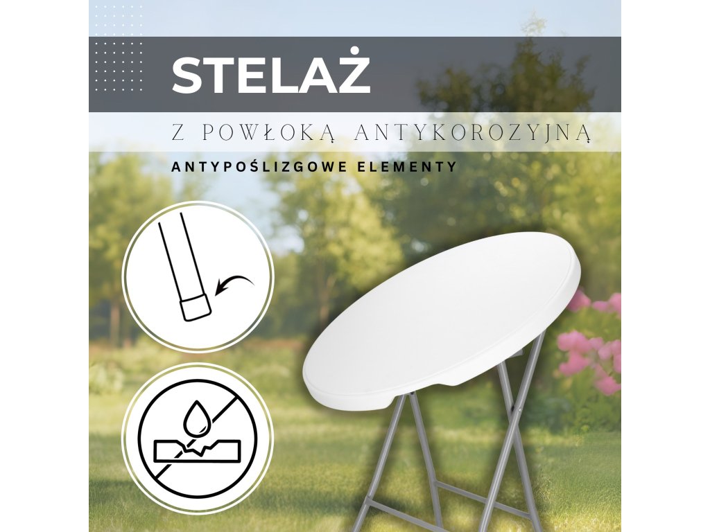 - Diametrul blatului: 80 cm