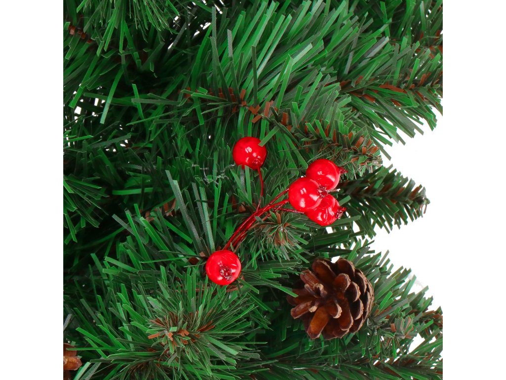 - Ghirlanda conține ramuri artificiale de conifere cu ace de PVC și ornamente: conuri naturale și boabe artificiale de scorțișoară
