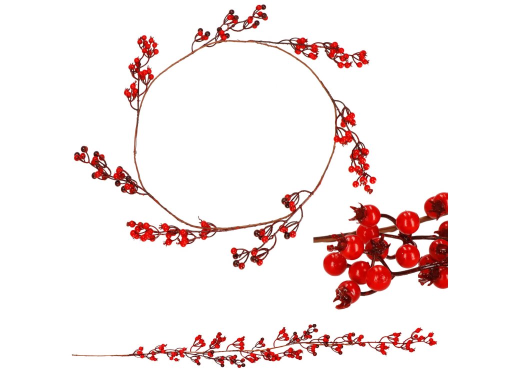 - Ghirlanda este decorată cu ramuri roșii de sorb
