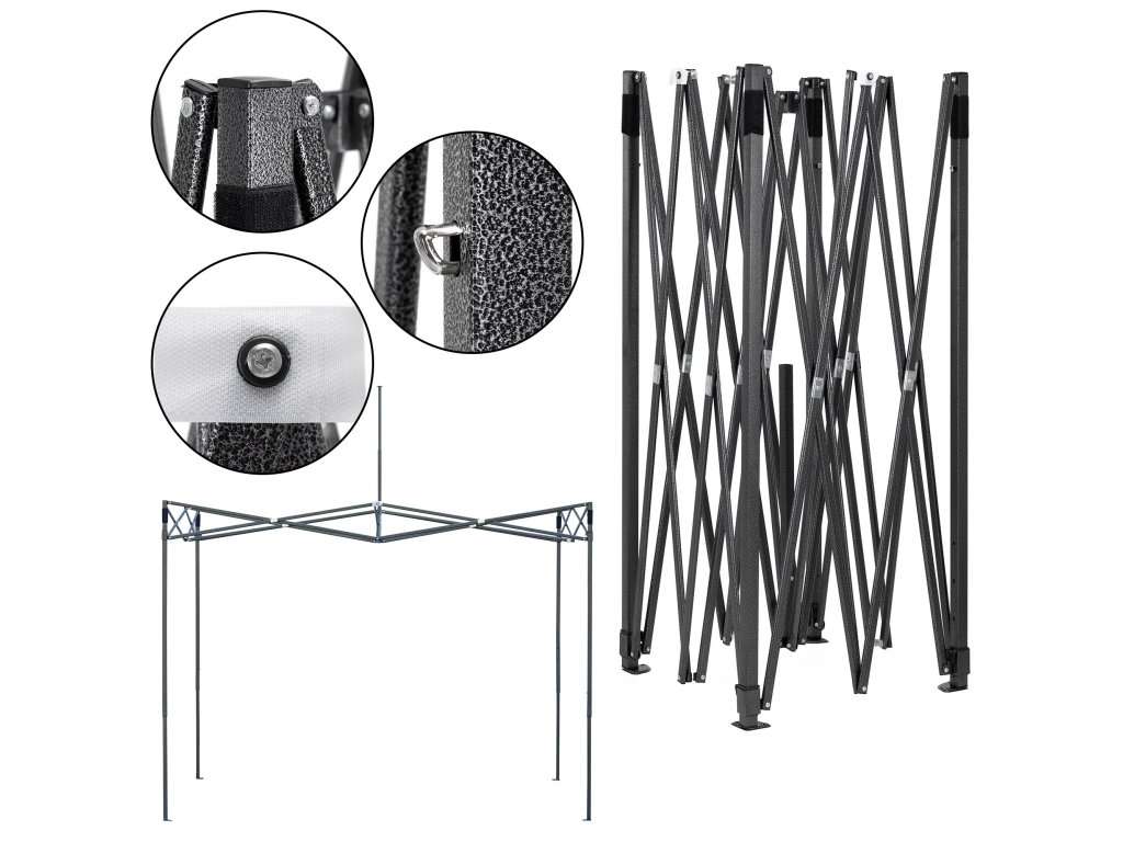 - Posibilitatea de a depozita întregul set – cadru, acoperiș și pereți – într-o singură husă