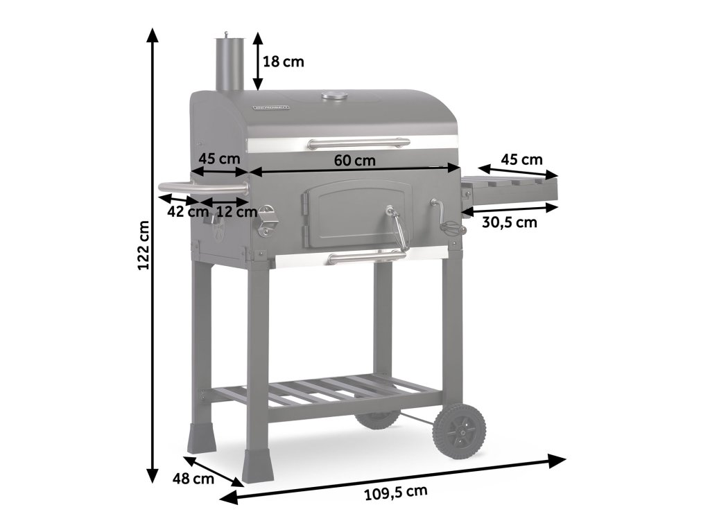Grill węglowy BBQChef™ Berdsen: BD-891 Mocny, wszechstronny i niezawodny! ✅ Niezapomniane spotkania — zamień ogród w centrum towarzyskich spotkań! Nasz grill przyciąga wspólne chwile przy pysznym jedzeniu. ✅ Zostań kulinarnym mistrzem — poczuj się jak szef kuchni w swoim ogrodzie! Nasz grill pozwala na eksperymentowanie. ✅ Relaks w ogrodzie — zafunduj sobie najwyższy poziom odpoczynku! Dopracowane detale dla wygody. Pokrowiec 100% wodoodporny w zestawie! Główne cechy BBQChef™: wysoka jakość wykonania, solidny i wytrzymały 2-częściowy ruszt żeliwny o wymiarach 57 x 43 cm, stal malowana proszkowo odporna na wysokie temperatury, duże koła ułatwiają przenoszenie, praktyczna półka dolna na węgiel, łatwy w czyszczeniu, łatwe kontrolowanie temperatury i wysokości paleniska, dodatkowy ruszt do podgrzewania wykonany ze stali nierdzewnej. ✅ Regulowana wysokość paleniska pozwala na regulację temperatury i intensywności, z jaką potrawy są pieczone. Większa precyzja i więcej możliwości! Zdrowe i smakowite grillowanie w twoim ogrodzie! Dietetyczne: grillowanie to doskonały sposób na przygotowanie zdrowych i smakowitych posiłków. Dzięki temu, że tłuszcz wytapia się i spływa, grillowane potrawy są mniej kaloryczne i zdrowsze. Zdrowe: szybkie gotowanie na wysokiej temperaturze zachowuje więcej witamin i minerałów, a naturalne smaki składników wymagają mniej soli i tłuszczu. Smakowite: dodatkowo, reakcje chemiczne zachodzące podczas grillowania nadają potrawom niepowtarzalny, dymny aromat i wyjątkową teksturę, czyniąc je bardziej soczystymi i chrupiącymi. ✅ Grilluj zdrowo, ciesząc się pełnią smaków natury! Lepsza kontrola temperatury w grillu BBQChef™ ✅ Ruszt żeliwny: zapewnia równomierne rozprowadzanie ciepła, co przekłada się na równomierne grillowanie potraw. Żeliwo dobrze trzyma ciepło, co pozwala na lepsze zarumienienie mięsa. ✅ Wbudowany termometr: umożliwia dokładne monitorowanie temperatury wewnątrz grilla, co jest kluczowe dla precyzyjnego gotowania różnych potraw. ✅ Regulowane ujście powietrza: pozwala na kontrolowanie przepływu powietrza, a tym samym regulację temperatury wewnątrz grilla, co jest niezbędne przy długim grillowaniu. GRATIS pokrowiec na grill Berdsen BBQChef™ z miejscem na komin ✅ Wykonany z wysokiej jakości materiału 210D OXFORD. ✅ W 100% wodoodporny poliuretan (110G). ✅ Powłoka UV. ✅ Skutecznie zabezpieczy Twój grill ogrodowy przed deszczem, wiatrem i promieniowaniem słonecznym. Ruszt, na którym się upiecze! ✅ Żeliwne ruszty — złożone z dwóch części dla większej wygody i łatwości przy grillowaniu. Równomiernie rozprowadzają ciepło, dzięki czemu potrawy będą idealnie wypieczone. Zachowują smak potraw i ich właściwości. ✅ Dodatkowy ruszt ze stali nierdzewnej do podgrzewania — zachowuje temperaturę już upieczonych potraw na dłużej. Grilluj na luzie – prosto, smacznie i bez wysiłku! ✅ Nasz grill to mistrz prostoty i wygody – stabilny, równomiernie grzeje i działa intuicyjnie, więc grillowanie to czysta przyjemność! Zero stresu, tylko smak i dobra zabawa. ✅ A do tego ma wbudowany otwieracz do napojów, bo wiadomo – zimny napój w ręku to podstawa. Styl, wygoda i pełen chill przy grillu! BBQChef™ został wyposażony w szereg udogodnień. Szuflada na popiół. Regulacja dopływu powietrza. Półka boczna. Ruszt żeliwny, dwuczęściowy. Ruszt ze stali nierdzewnej. Pokrywa z kominem. Termometr. Drzwiczki do dokładania do paleniska. Uchwyt/otwieracz do piwa. Praktyczne kółka. Uchwyt regulujący wysokość paleniska. ✅ Grillowanie z BBQChef™ marki Berdsen to czysta przyjemność. Dzięki funkcjonalnemu i stylowemu designowi ty odpoczywasz, a jedzenie robi się samo! DANE TECHNICZNE materiał: stal kolor: antracyt rozmiar rusztów żeliwnych: 57 x 43 cm rozmiar rusztu do podgrzewania: 54 x 19 cm wymiary całkowite: 122 x 109,5 x 48 cm waga grilla: 25,35 kg wysokość grillowania: 81 cm 2 duże kółka jezdne wbudowany termometr komin z regulowaną przysłoną szuflada na popiół drzwiczki dające dostęp do paleniskaParametri suplimentari