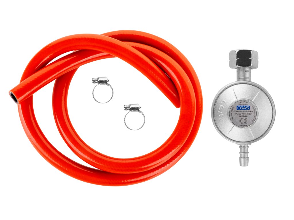 La magazinul Teesa puteți achiziționa și un regulator de gaz pentru a conecta grătarul la o butelie de gaz. Pe lângă regulator, setul include 2 cleme pentru furtun și un furtun din plastic PVC de 1,5 m lungime, întărit cu o curea textilă.