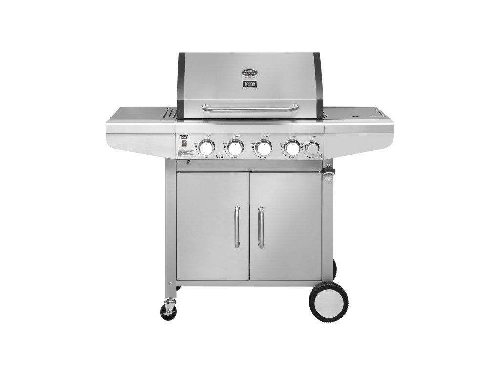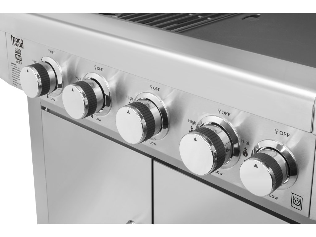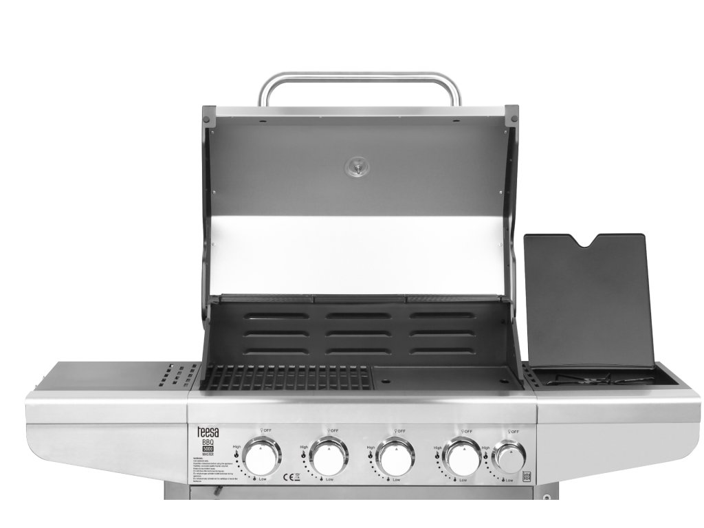 Grătarul pe gaz Teesa se caracterizează prin calitatea superioară a materialelor utilizate. Părțile exterioare - inclusiv capacul cu mâner, panoul și ușile dulapului - sunt fabricate din oțel inoxidabil. Aceasta este garanția că Teesa BBQ 5000 Master vă va servi mulți ani.