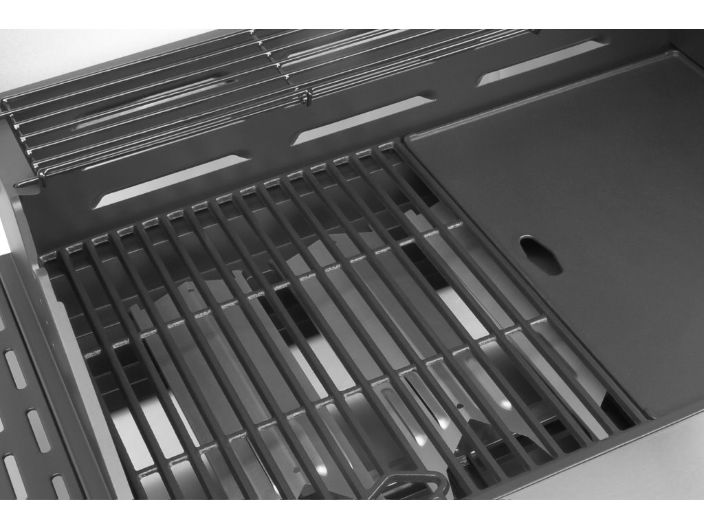 Cu grătarul pe gaz Teesa puteți pregăti o adevărată festin! Are, de exemplu, o grilă de fontă pentru prepararea cărnii și o placă de fontă netedă, ideală pentru grătarul de pește și fructe de mare. Și asta nu e tot! Acest grătar are și un grătar pentru încălzire.