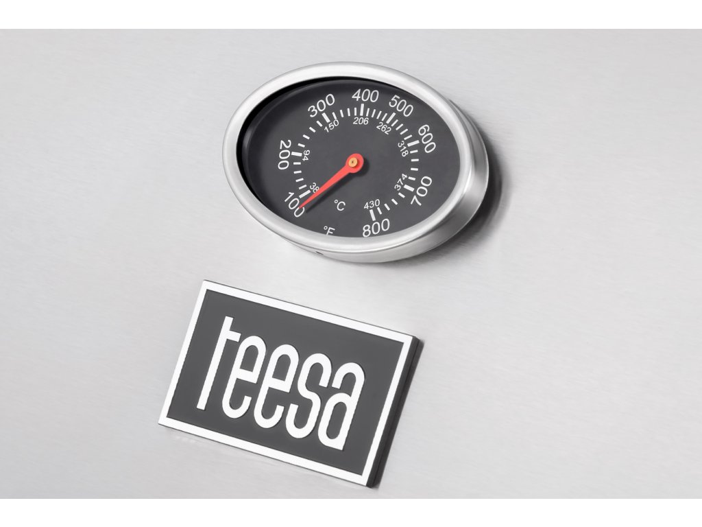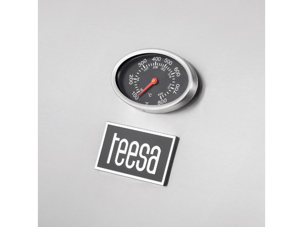 Teesa BBQ 5000 Master nu doar vă permite să reglați puterea arzătoarelor, ci și să monitorizați constant temperatura. Toate acestea datorită termometrului încorporat în capac.