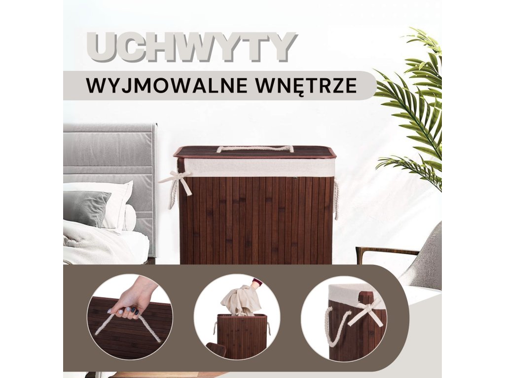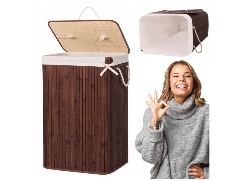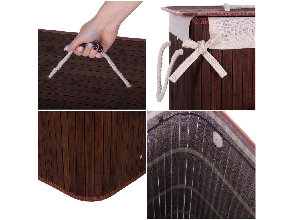 - Elemente incluse în set (5 piese): corp din bambus, bază din MDF, întărire superioară din sârmă metalică, interior din țesătură, capac de bambus