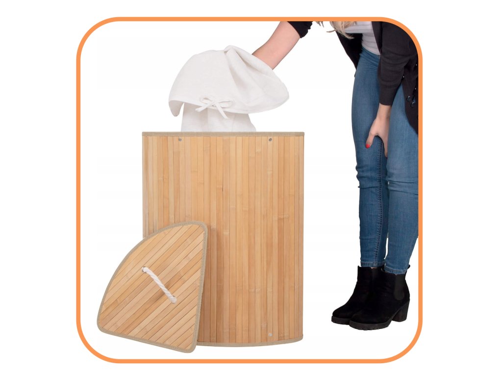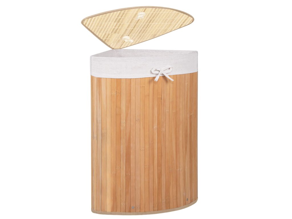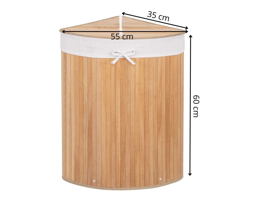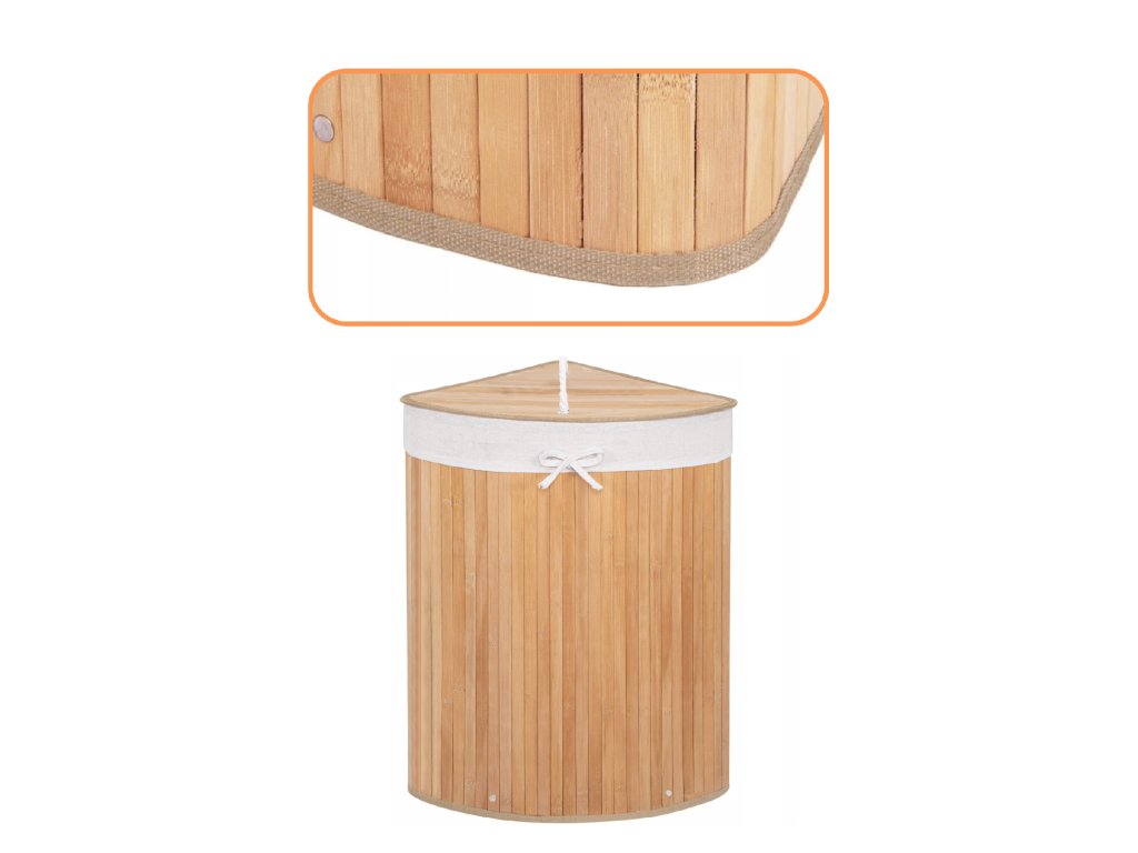 - Elemente în set (5 piese): corp din bambus, bază din MDF, întăritură superioară din sârmă metalică, interior din țesătură, capac de bambus