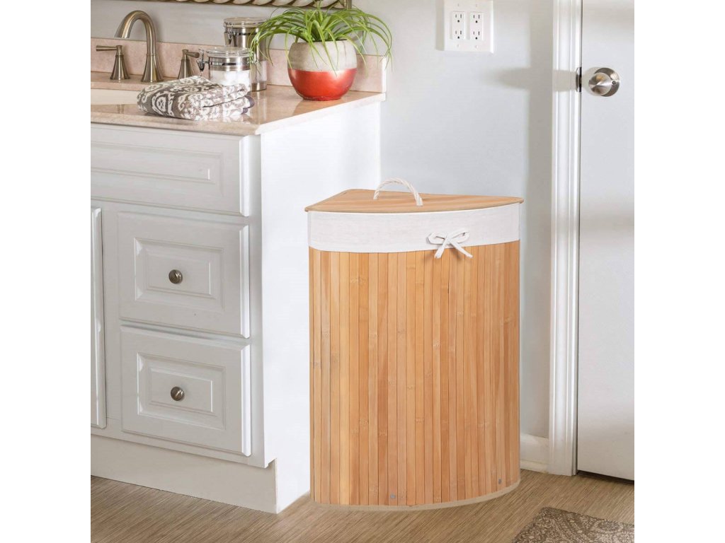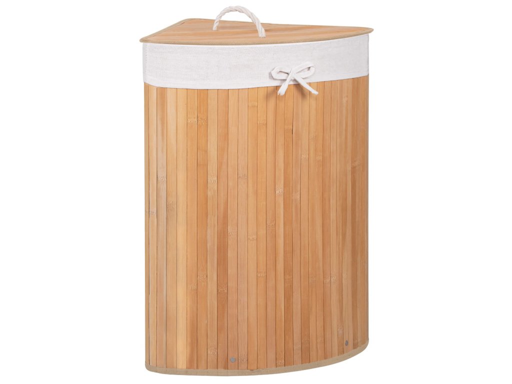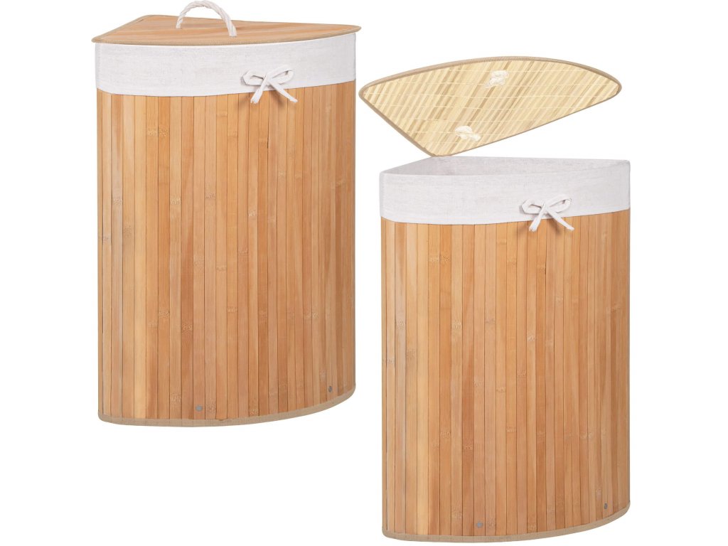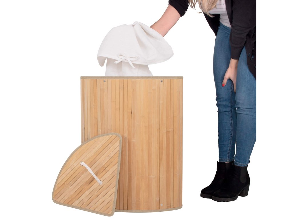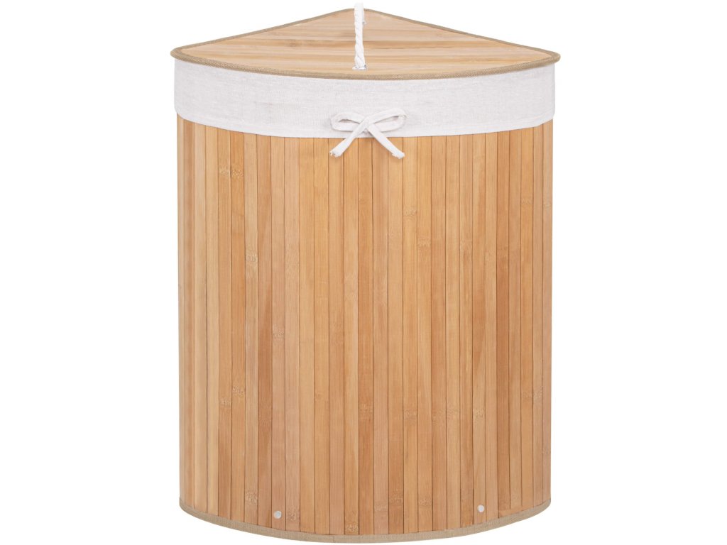 - Elemente în set (5 piese): corp din bambus, bază din MDF, întăritură superioară din sârmă metalică, interior din țesătură, capac de bambus