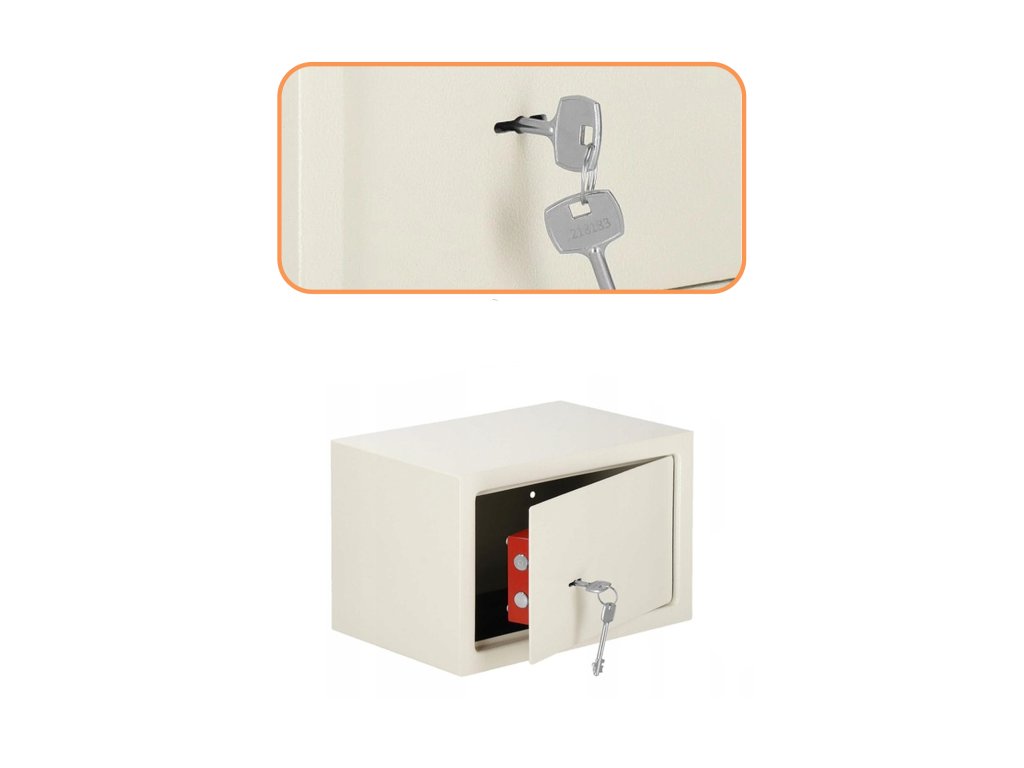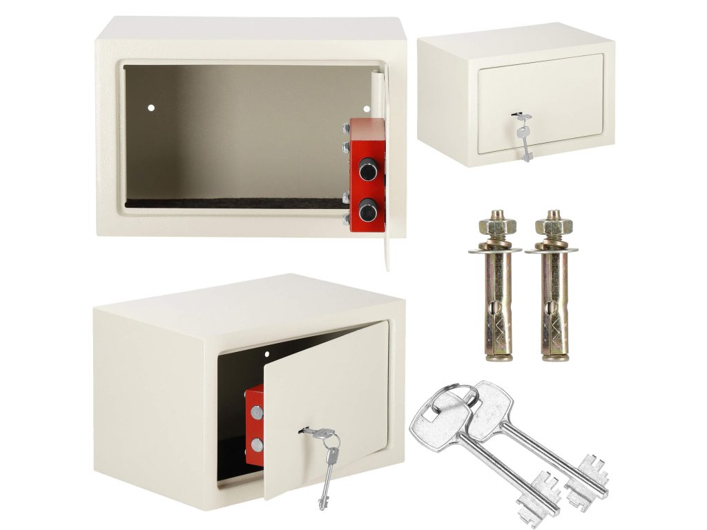 - În plus: posibilitatea de fixare pe pereți și podea (dibluri incluse), covoraș de fetru care izolează sonor interiorul seifului