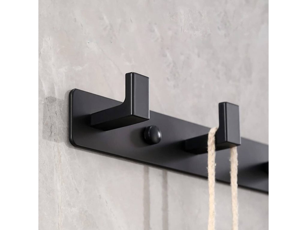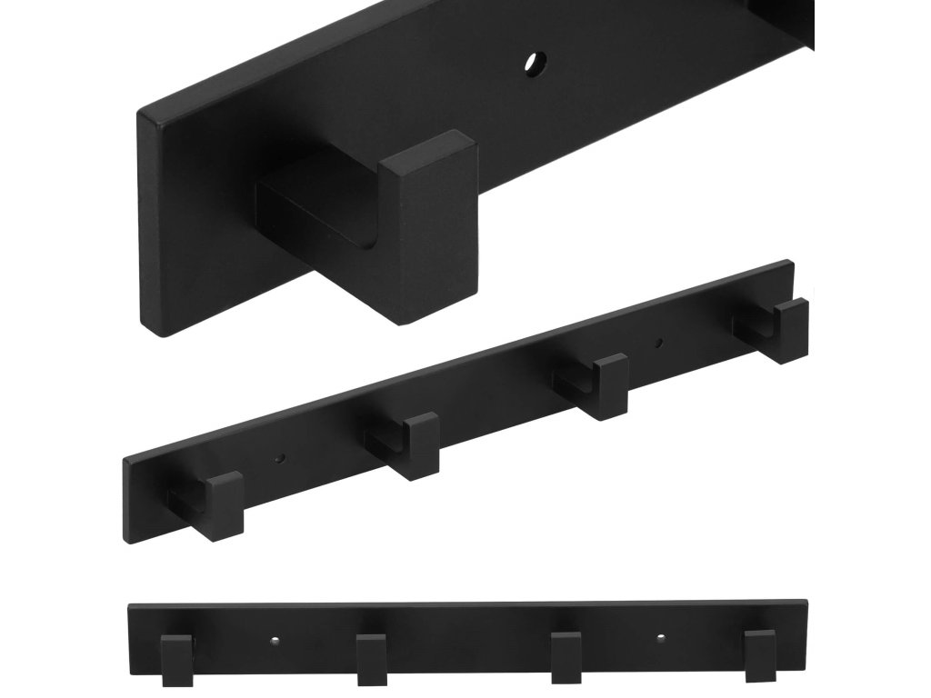 - Setul conține: cuier, adeziv, 2 șuruburi (lung. 28mm), 2 capace negre, autocolante utile pentru montajul cu adeziv