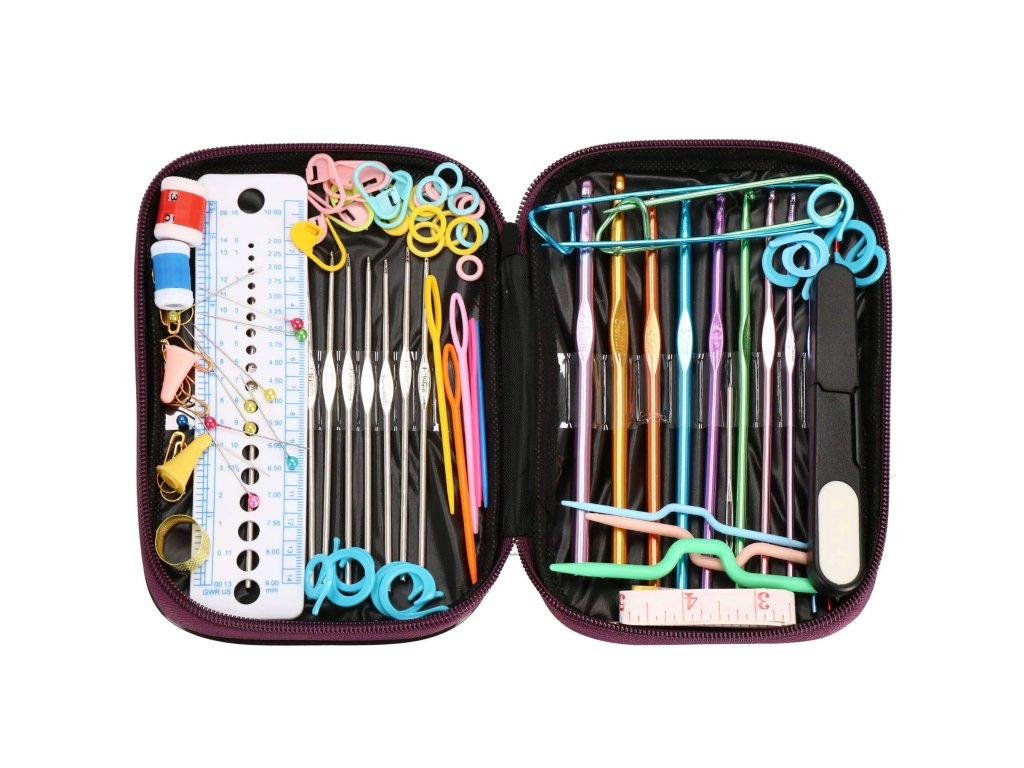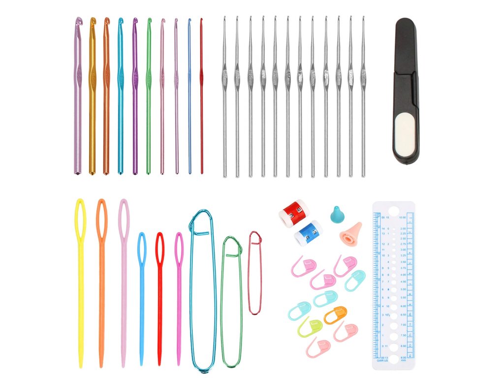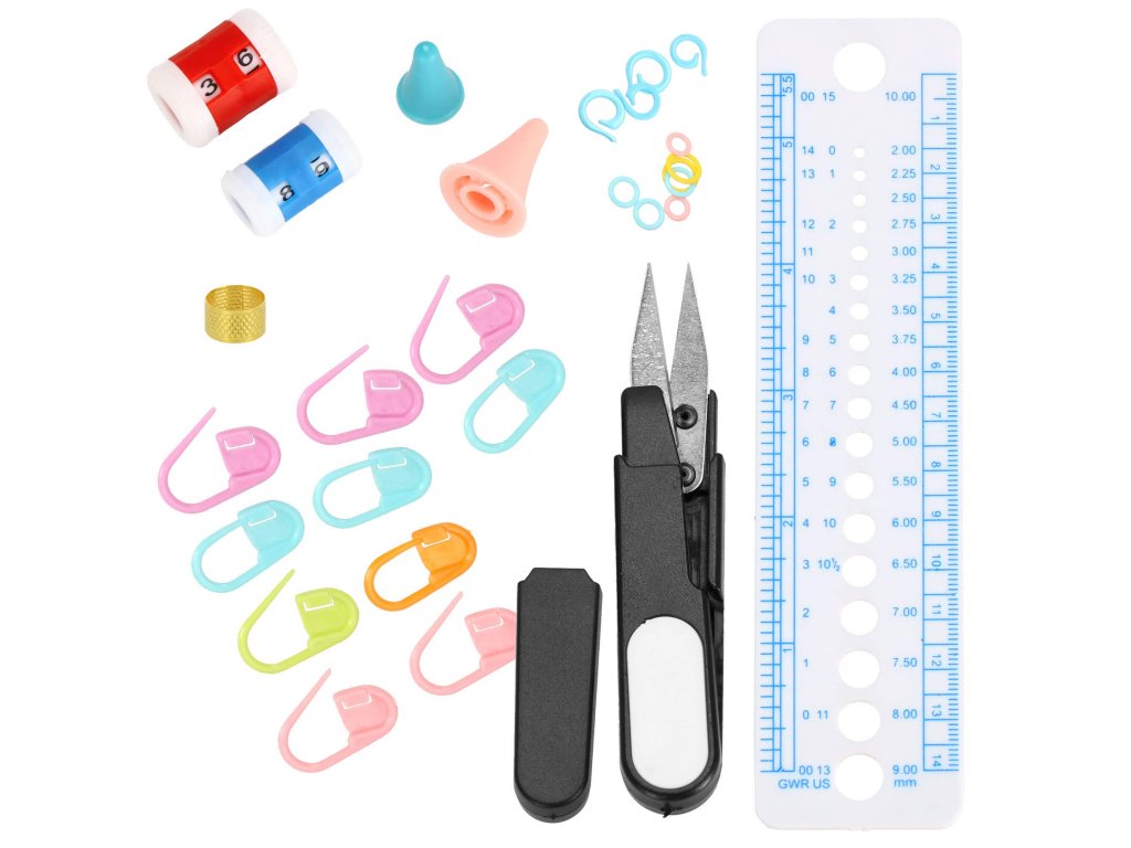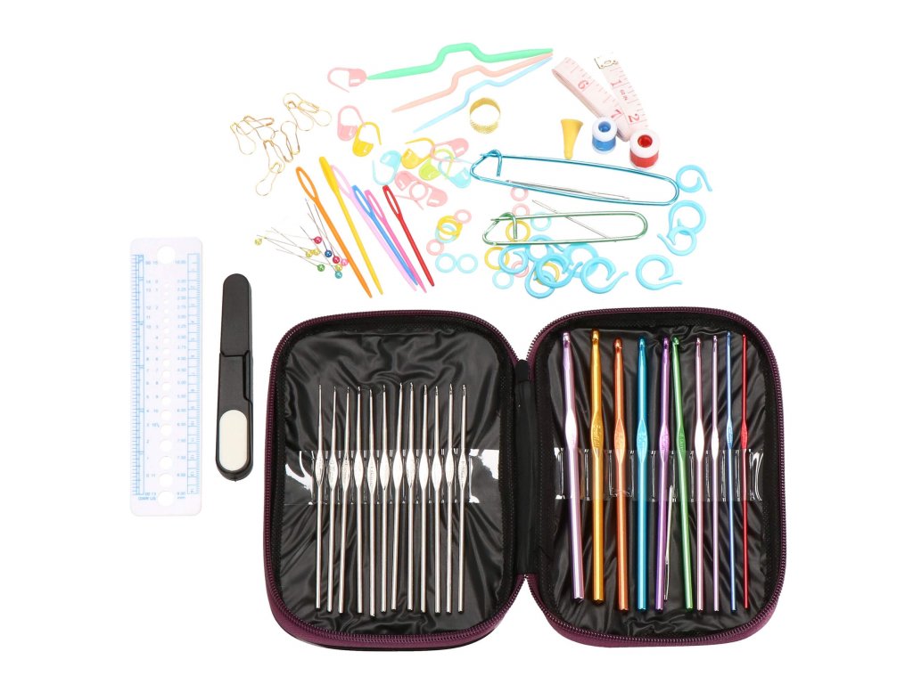 Set croitorie cu cârlige și accesorii de tricotat.