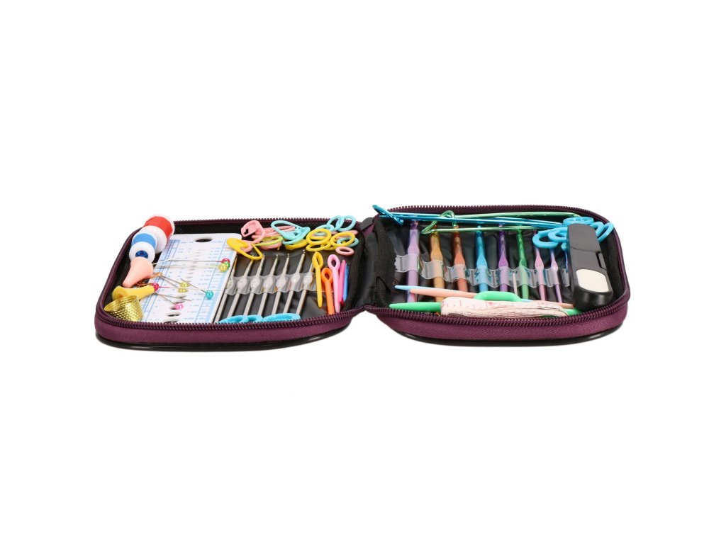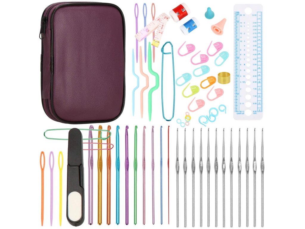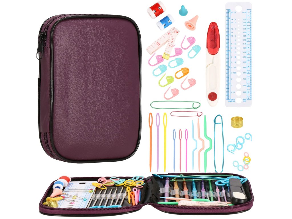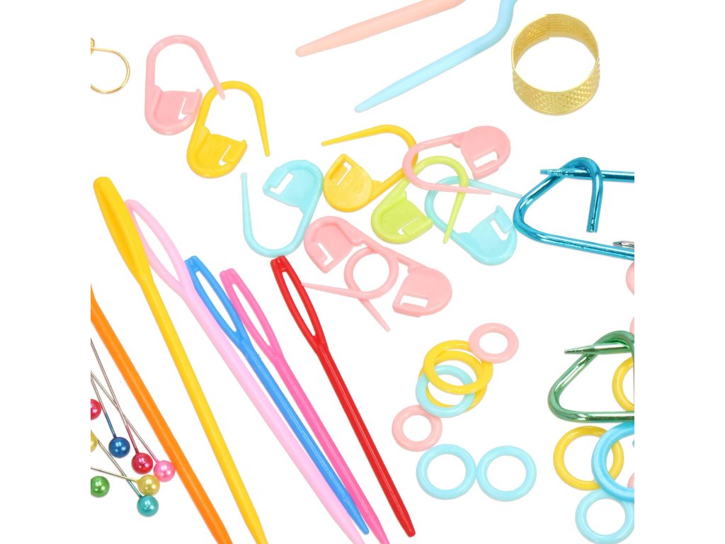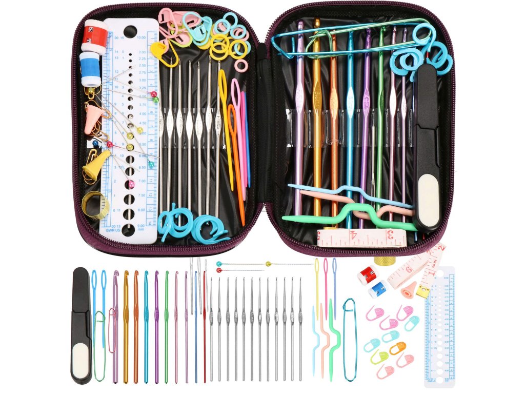 Set croitorie cu cârlige și accesorii de tricotat.