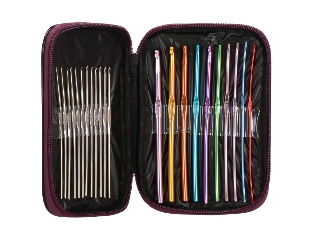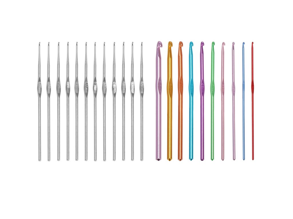 - 10 cârlige colorate din aluminiu în dimensiuni: 2,0, 2,5, 3,0, 3,5, 4,0, 4,5, 5,0, 5,5, 6,0, 6,5 mm