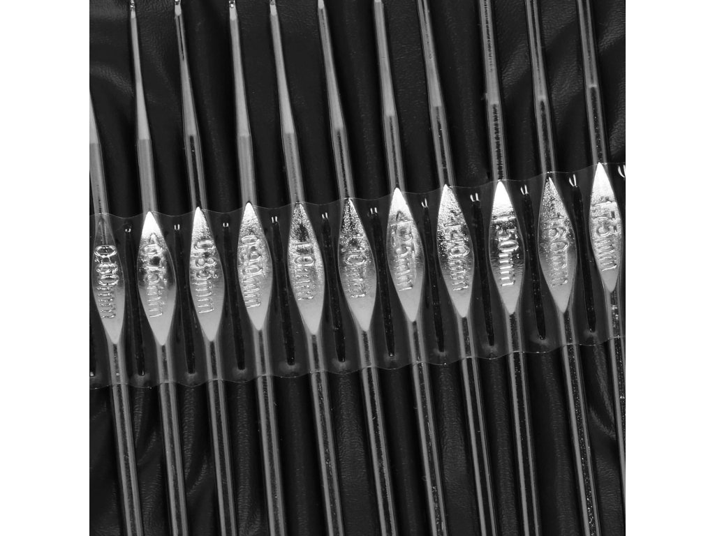 - 12 cârlige argintii din oțel inoxidabil în dimensiuni: 0,60, 0,75, 0,85, 0,90, 1,00, 1,10, 1,25, 1,40, 1,50, 1,60, 1,75, 1,90 mm