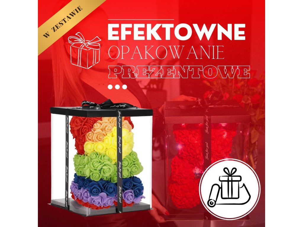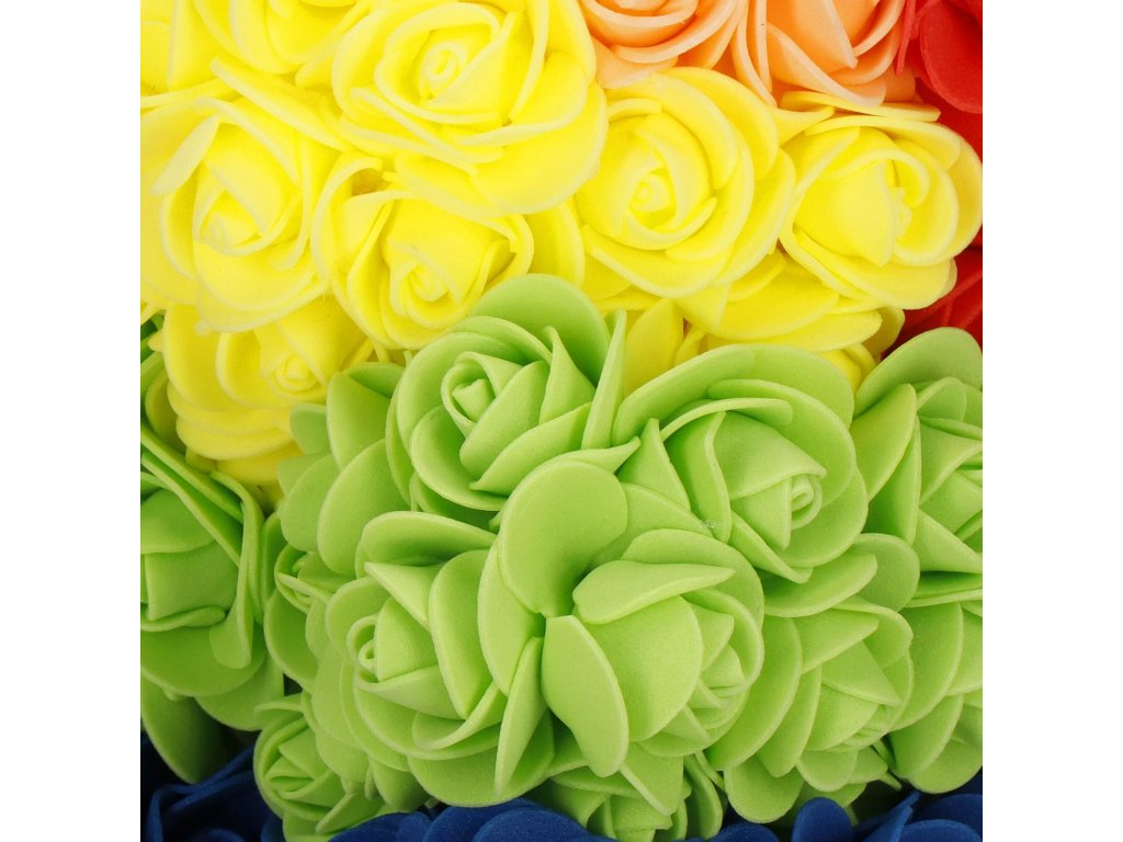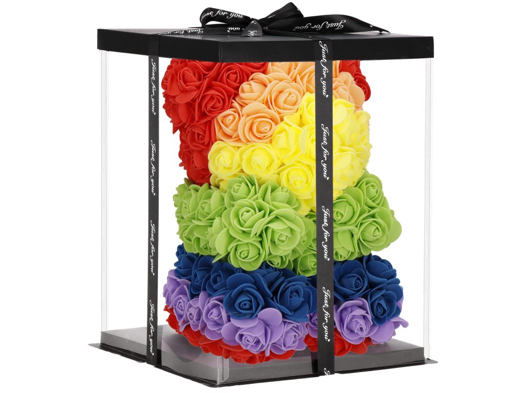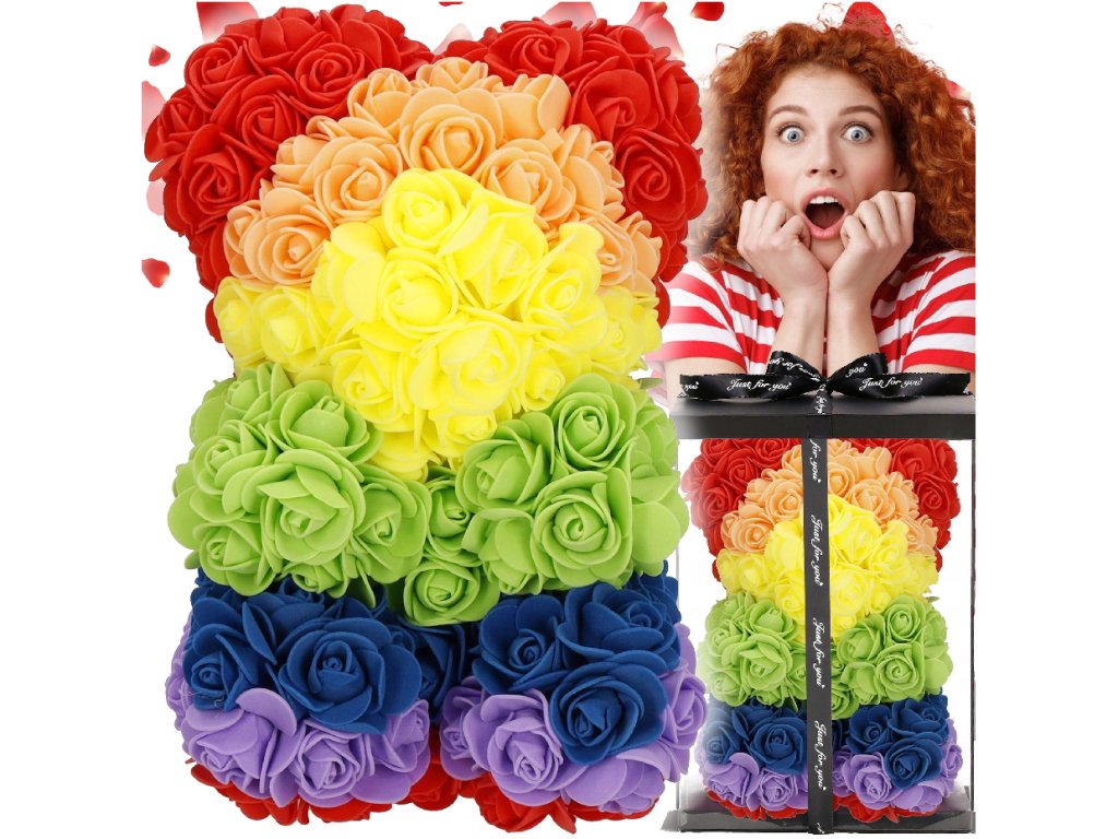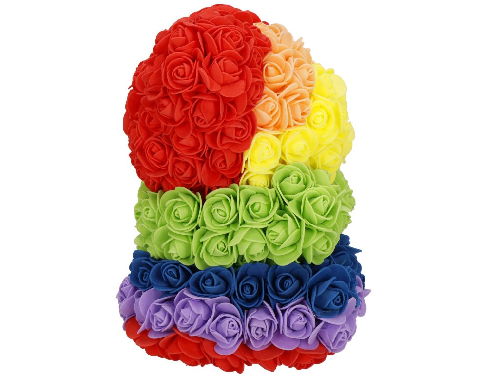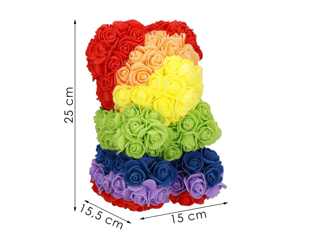 - Model: ursuleț curcubeu din trandafiri în poziție șezut
