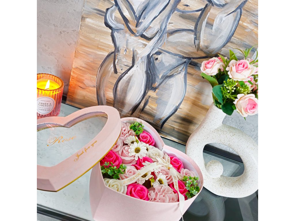 - Setul include un cartonaș decorativ cu urare și panglică cu inscripția "Just for you"