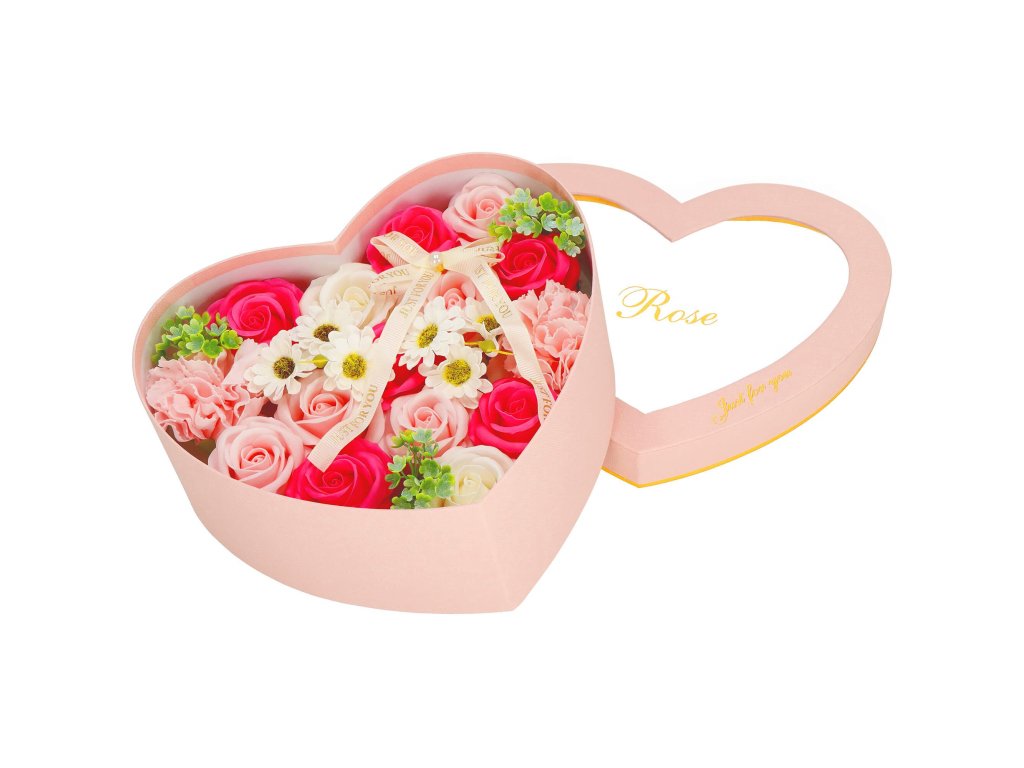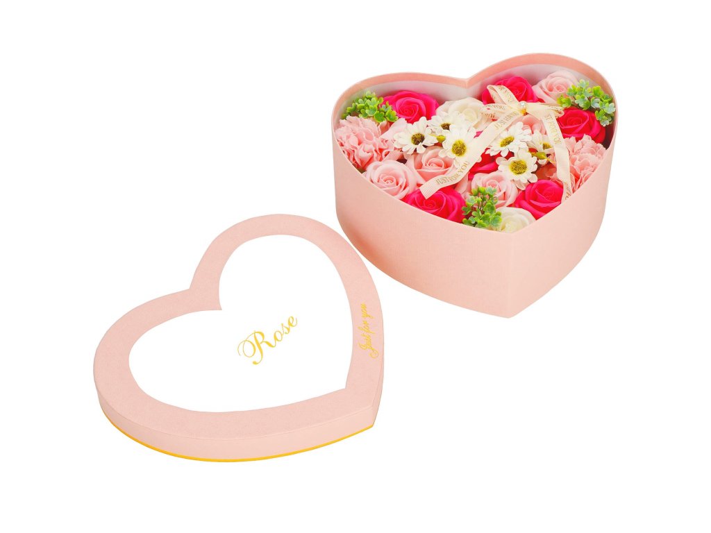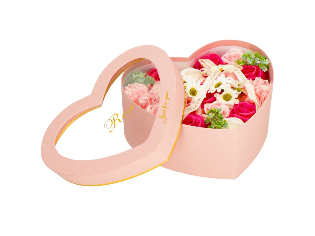 - Capac echipat cu deschidere din plastic transparent în formă de inimă cu inscripția Rose