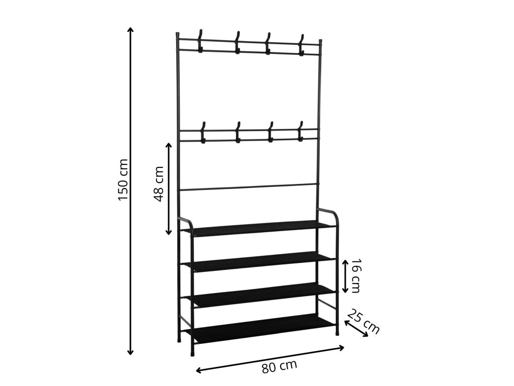 - Înălțimea de la cel mai înalt raft la cuiere: 48 cm
