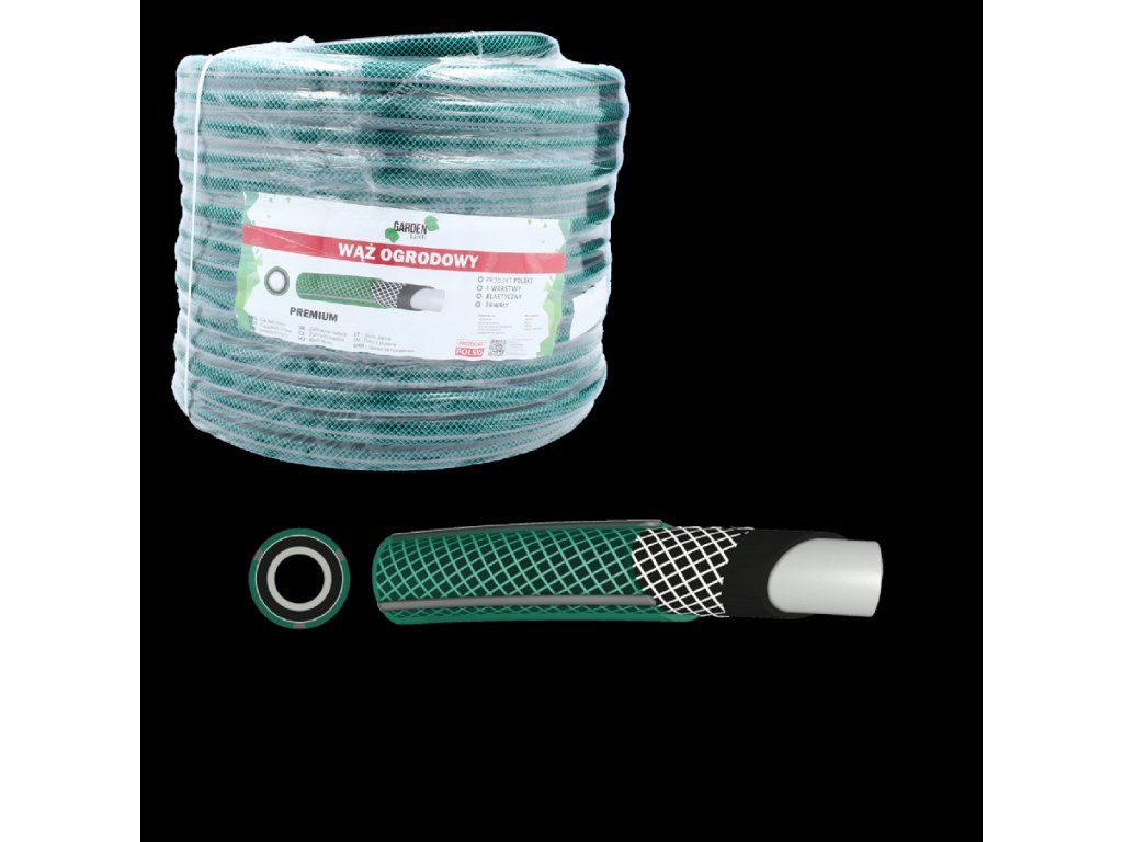 Hose de jardin PREMIUM cu o lungime de 50 m și un diametru de 1/2 este un produs de cea mai înaltă calitate, fabricat în Polonia. Construcția sa cu 4 straturi, realizată din PVC elastic pe bază de clorură de polivinil în suspensie, tereftalat și alte componente, asigură o rezistență ridicată la deteriorare și o durată lungă de viață. În plus, furtunul este întărit prin împletire textilă, ceea ce îi crește rigiditatea. Furtunul este destinat pomparii apei cu o presiune de lucru de 8 bari (la 20°C), iar presiunea de rupere depășește 24 bari (la 20°C). Furtunul funcționează într-un interval larg de temperaturi, de la -10°C la +60°C, ceea ce îl face rezistent la schimbările vremii și poate fi utilizat pe tot parcursul anului.