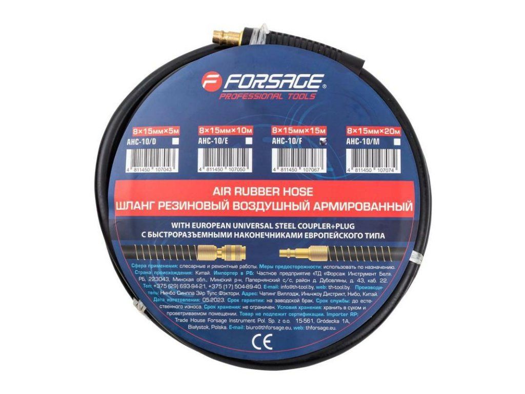 Hose pneumatică din cauciuc întărită cu oțel 8mm x15mm 15m cu racorduri rapide