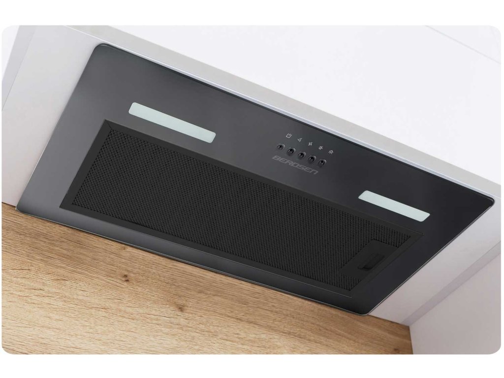 Hota devine o parte integrantă a instalației de bucătărie și ușor ascunsă își îndeplinește discret rolul.