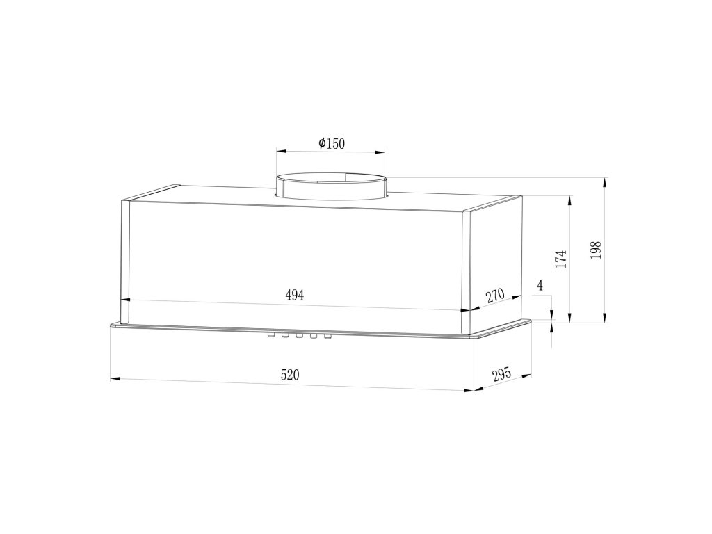 - diametrul ieșirii: 150 mm